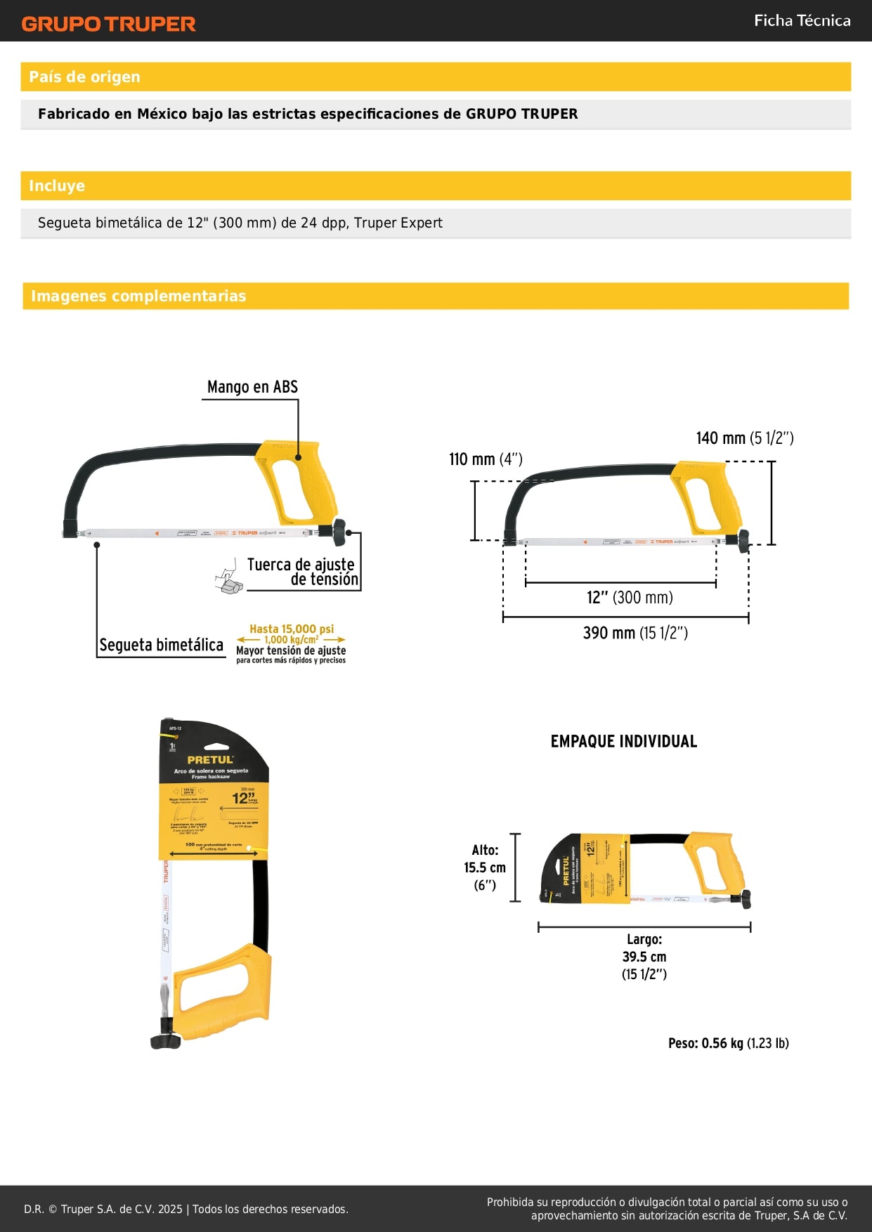 - Compatible con hojas estándar - Acepta seguetas de 12 pulgadas de diferentes dentados