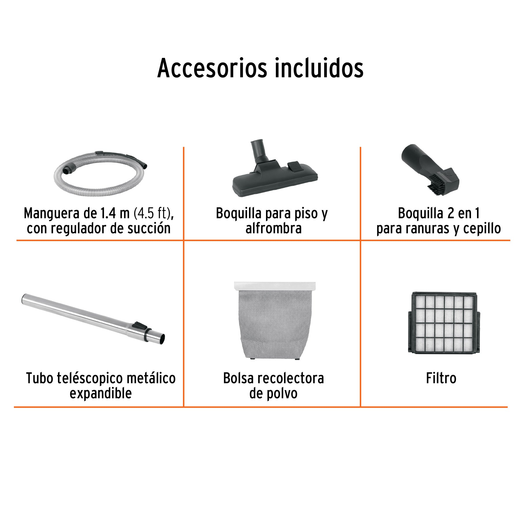 - ✓ Motor potente de 1200W (1.6HP) - Máxima capacidad de succión