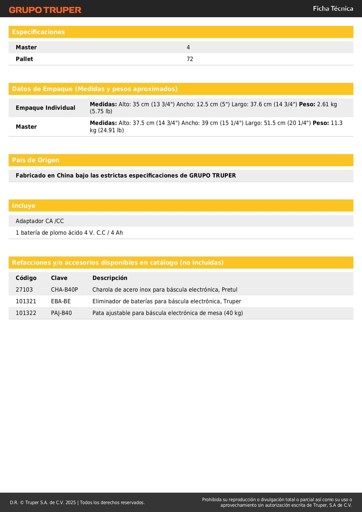 - Capacidad máxima: 40 kg - ideal para comercios, tiendas, mercados y negocios