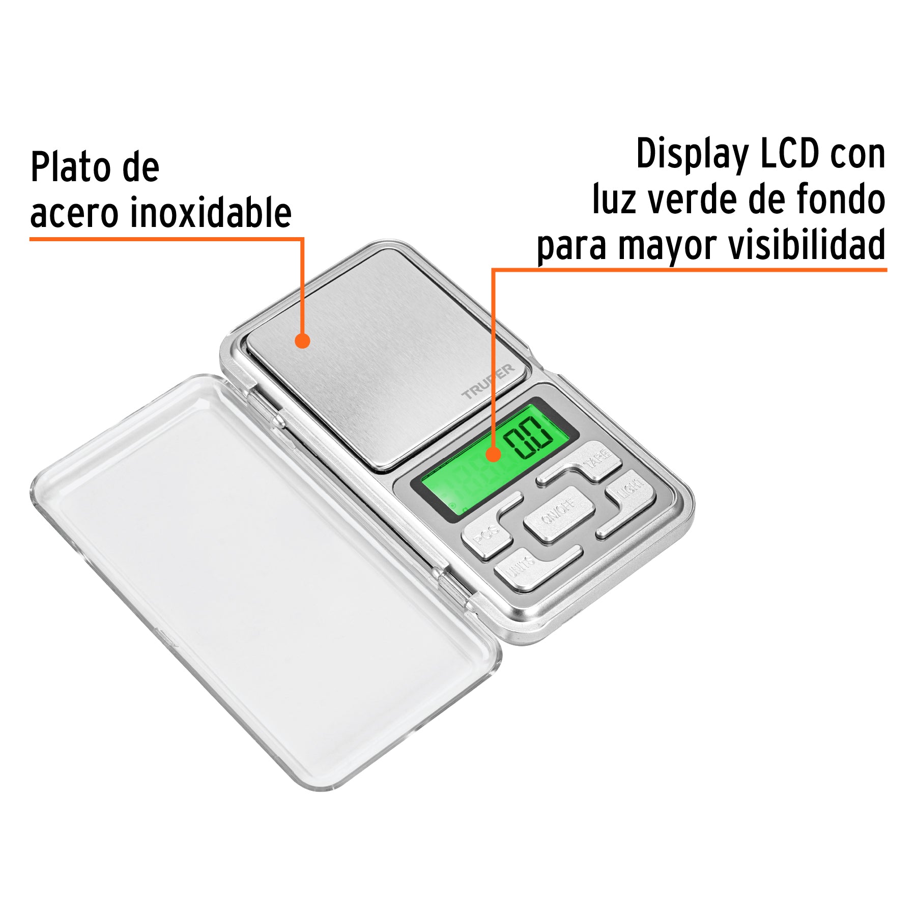 Báscula Electrónica Digital de Precisión Truper 500g - Portátil con Display LCD y Función TARA para Joyería, Especias y Piezas Pequeñas - Solución Profesional para Pesaje Exacto