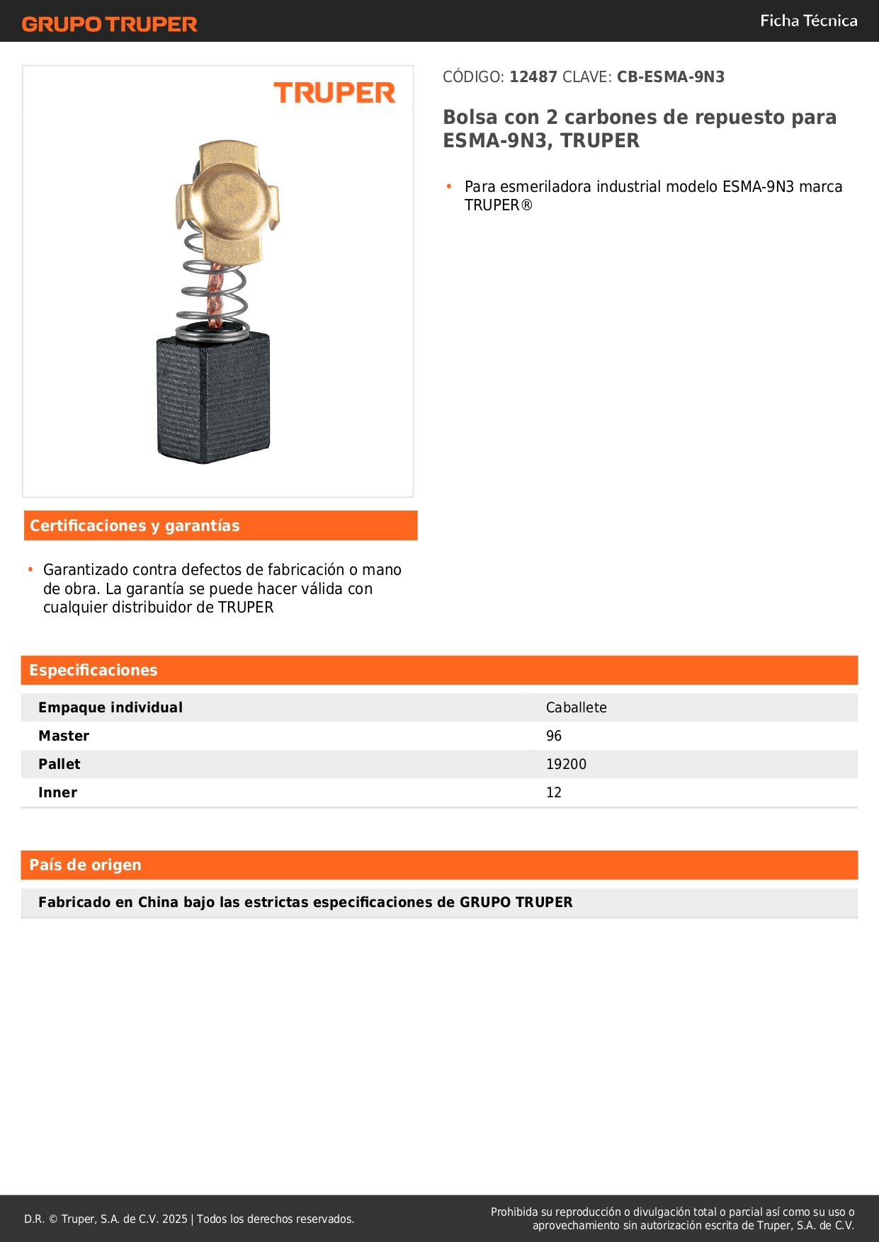 Al elegir carbones originales TRUPER garantizas la compatibilidad perfecta, evitas daños al motor de tu esmeriladora y mantienes la garantía de tu herramienta. Las refacciones genéricas pueden causar sobrecalentamiento, desgaste prematuro y fallas en el sistema eléctrico.