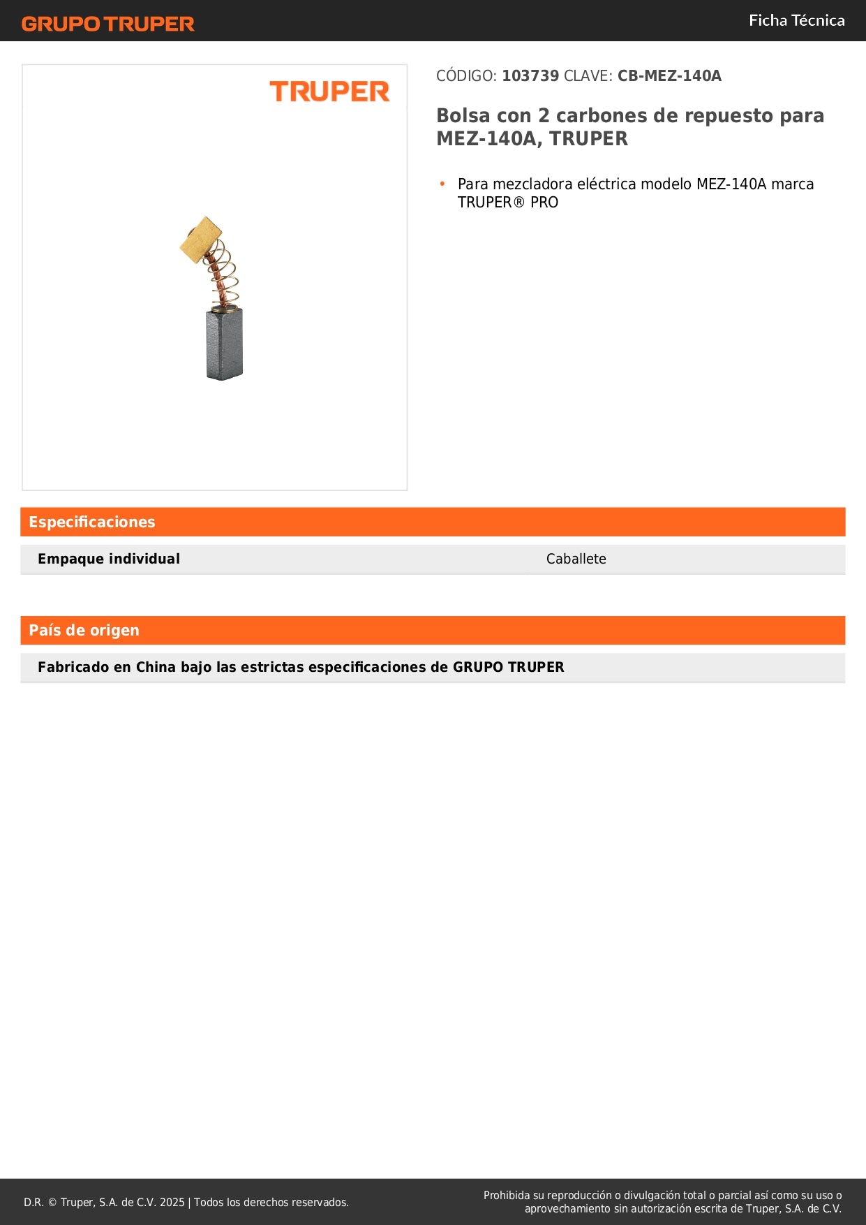 - Calidad original TRUPER: Repuestos certificados que aseguran el rendimiento óptimo de tu herramienta