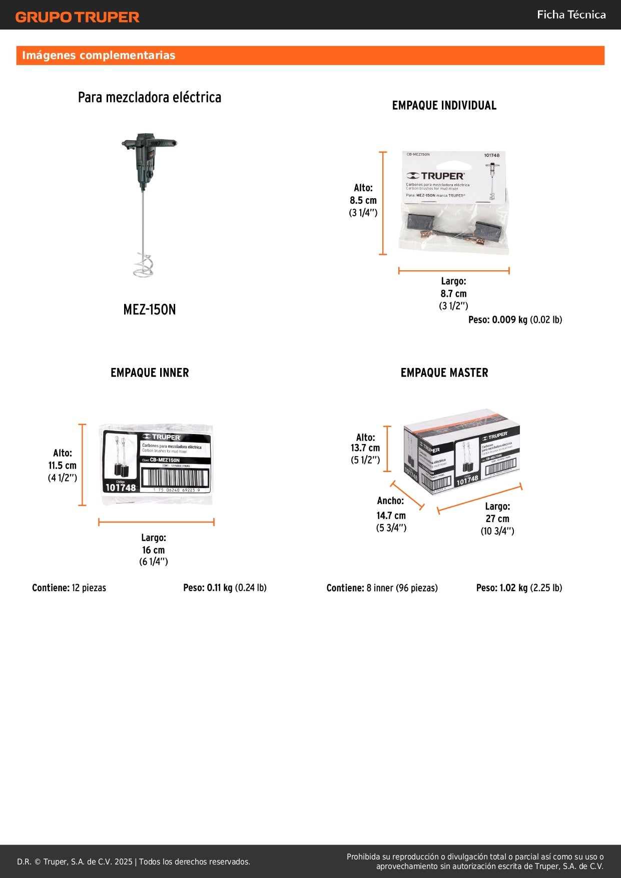 Bolsa con 2 carbones de repuesto originales TRUPER diseñados específicamente para esmeriladora angular modelo MEZ-150N. Estos carbones garantizan el rendimiento óptimo y la durabilidad de tu herramienta eléctrica.