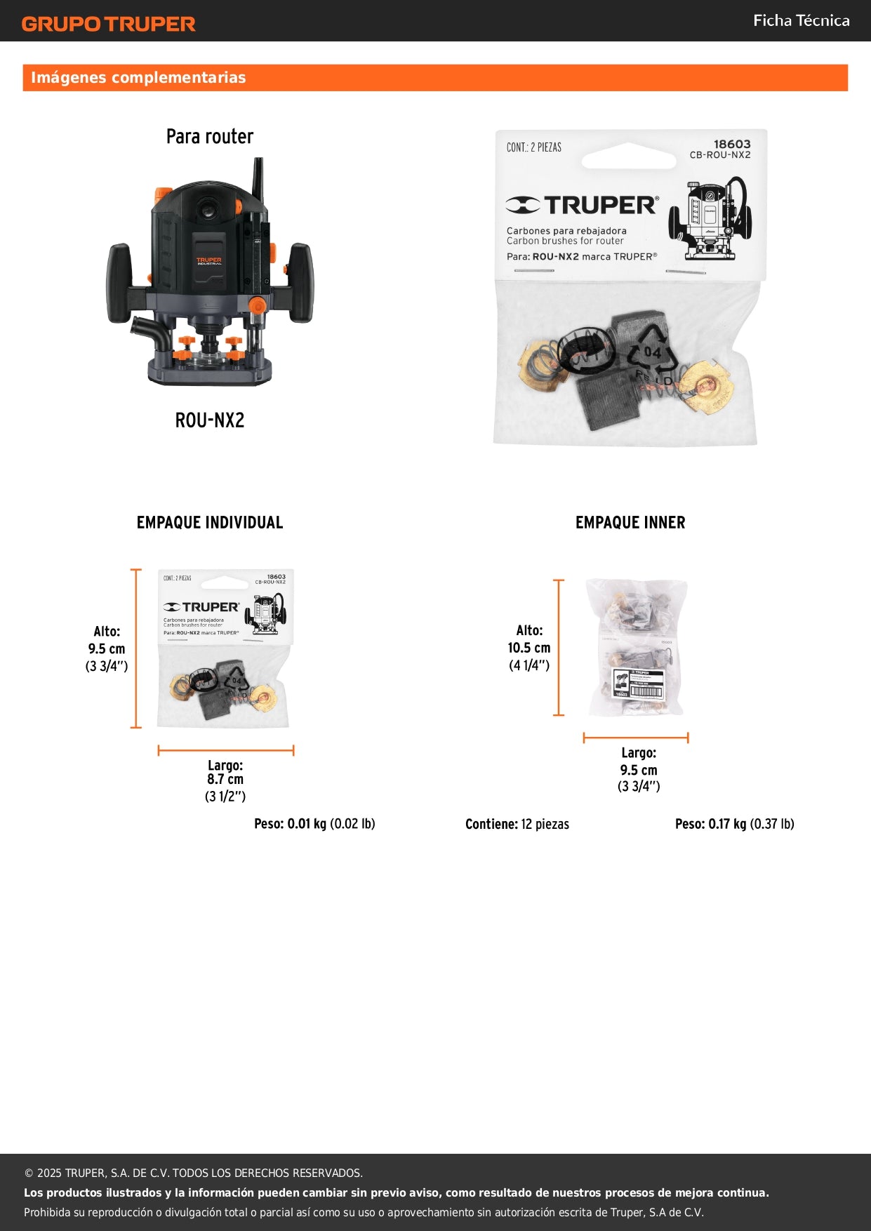 - Compatibilidad garantizada: Diseñados exclusivamente para router TRUPER modelo ROU-NX2