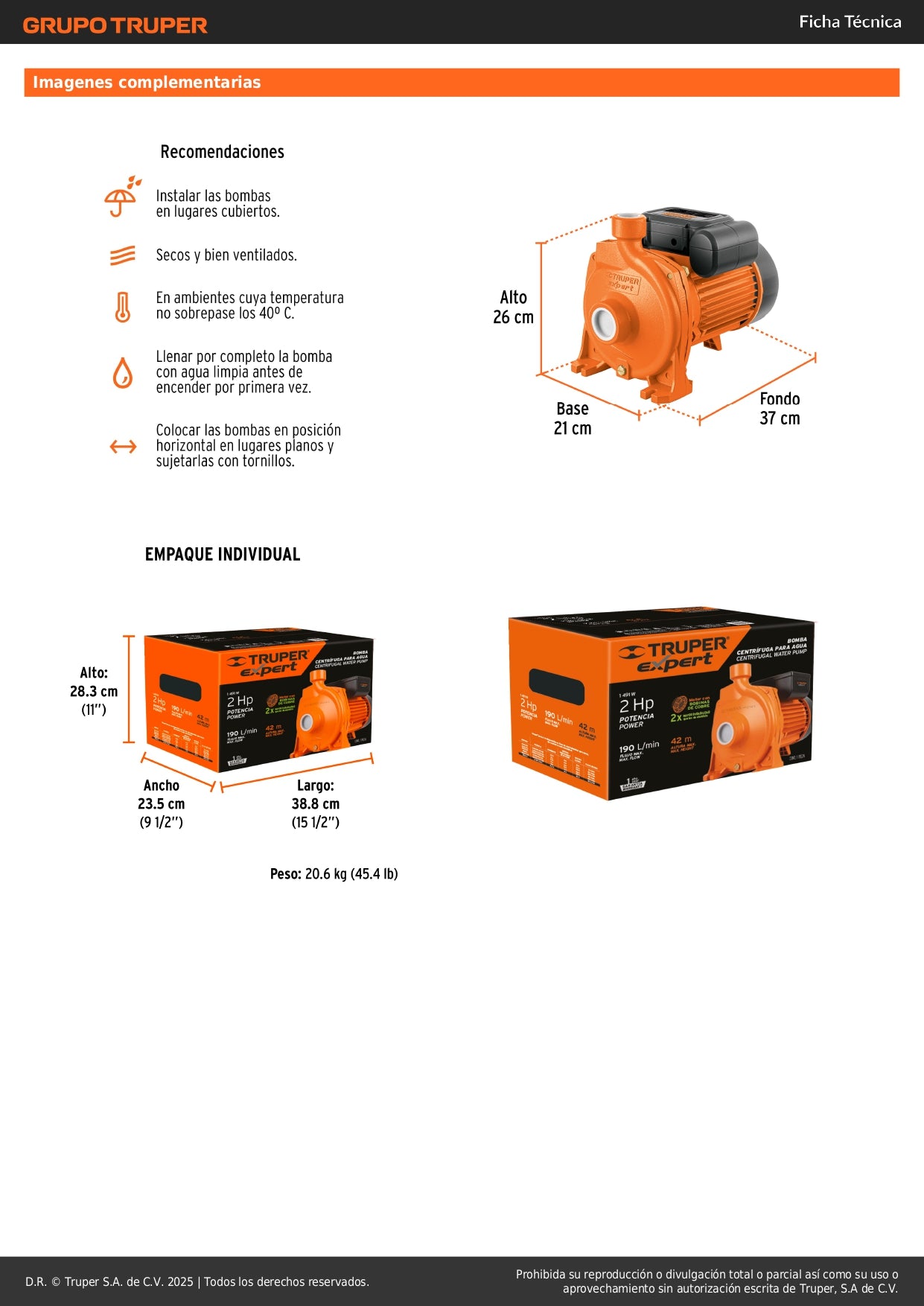 Bomba Centrífuga 2HP EXPERT BOAC-2 - Alto Rendimiento para Agua Limpia