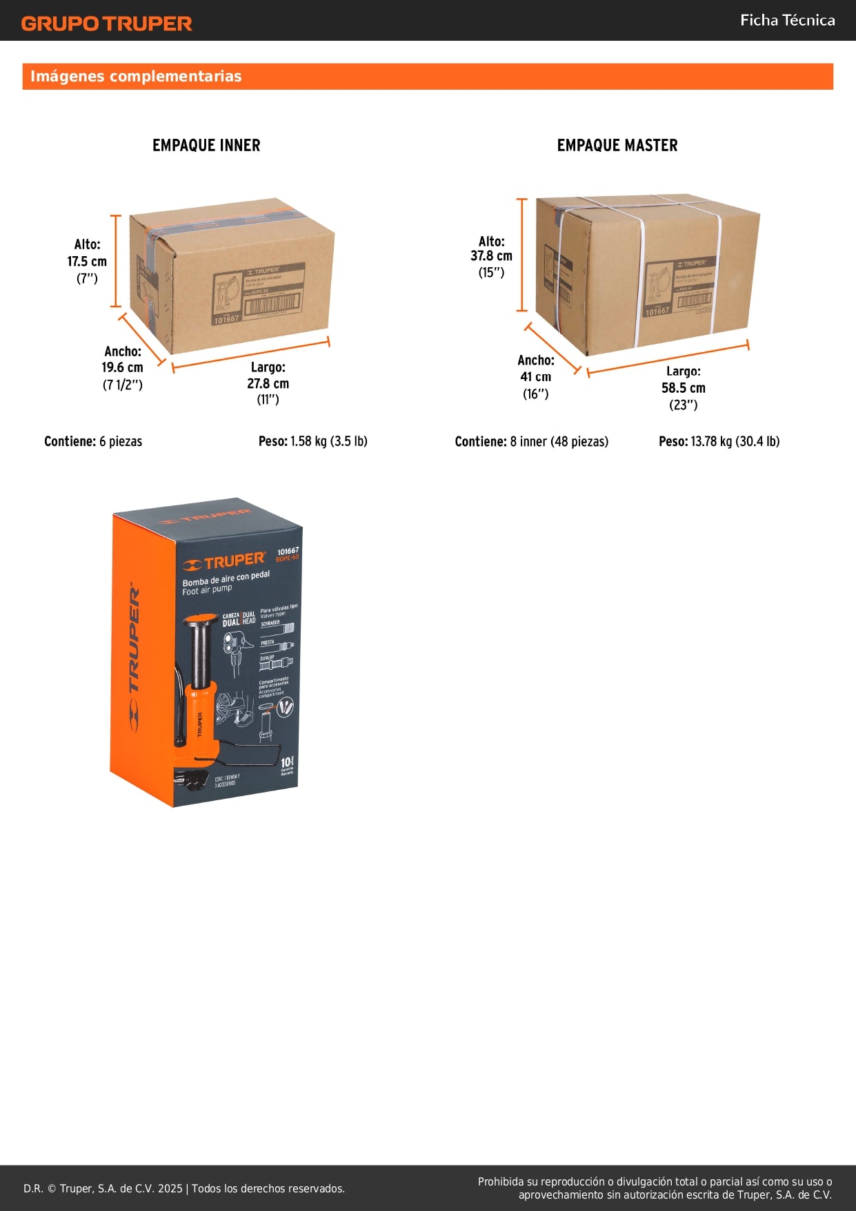 Palabras clave: bomba de pedal, inflador bicicleta, bomba aire, inflador universal, bomba TRUPER, inflador balones, bomba presión, inflador manual, bomba pie, accesorios ciclismo