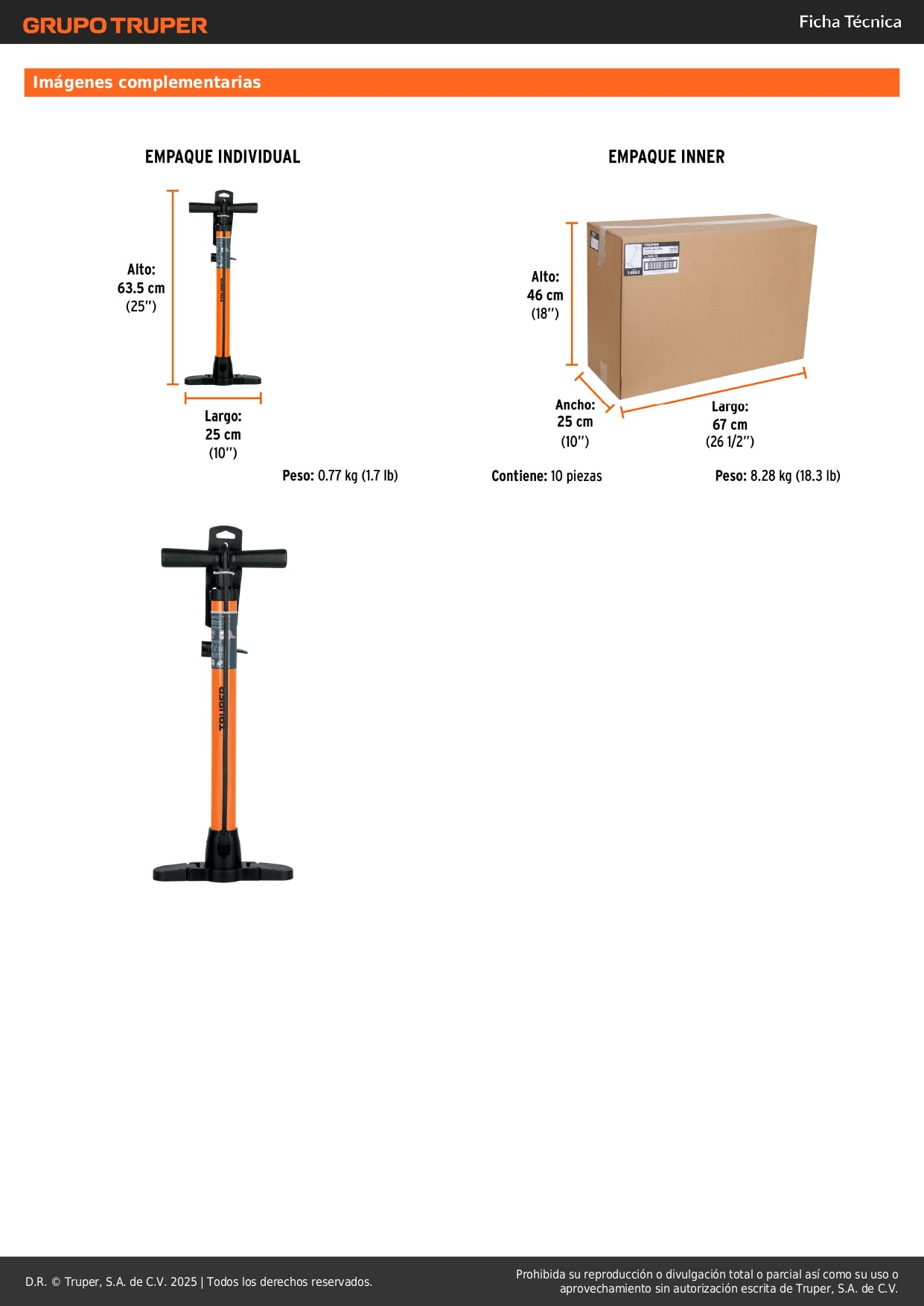 Marca de confianza TRUPER® - Calidad profesional garantizada. Mantén siempre la presión correcta en tus neumáticos para un mejor rendimiento y seguridad.