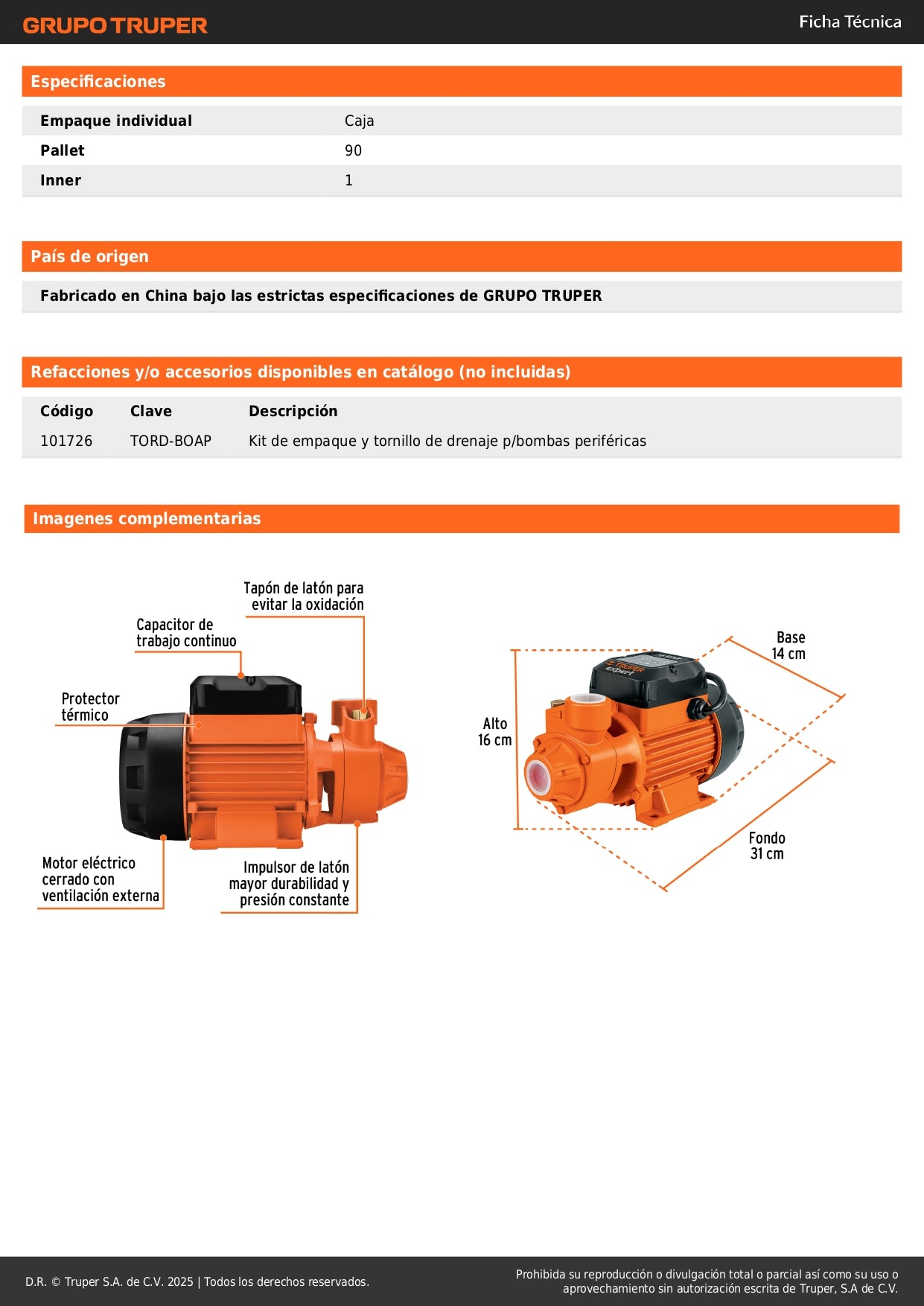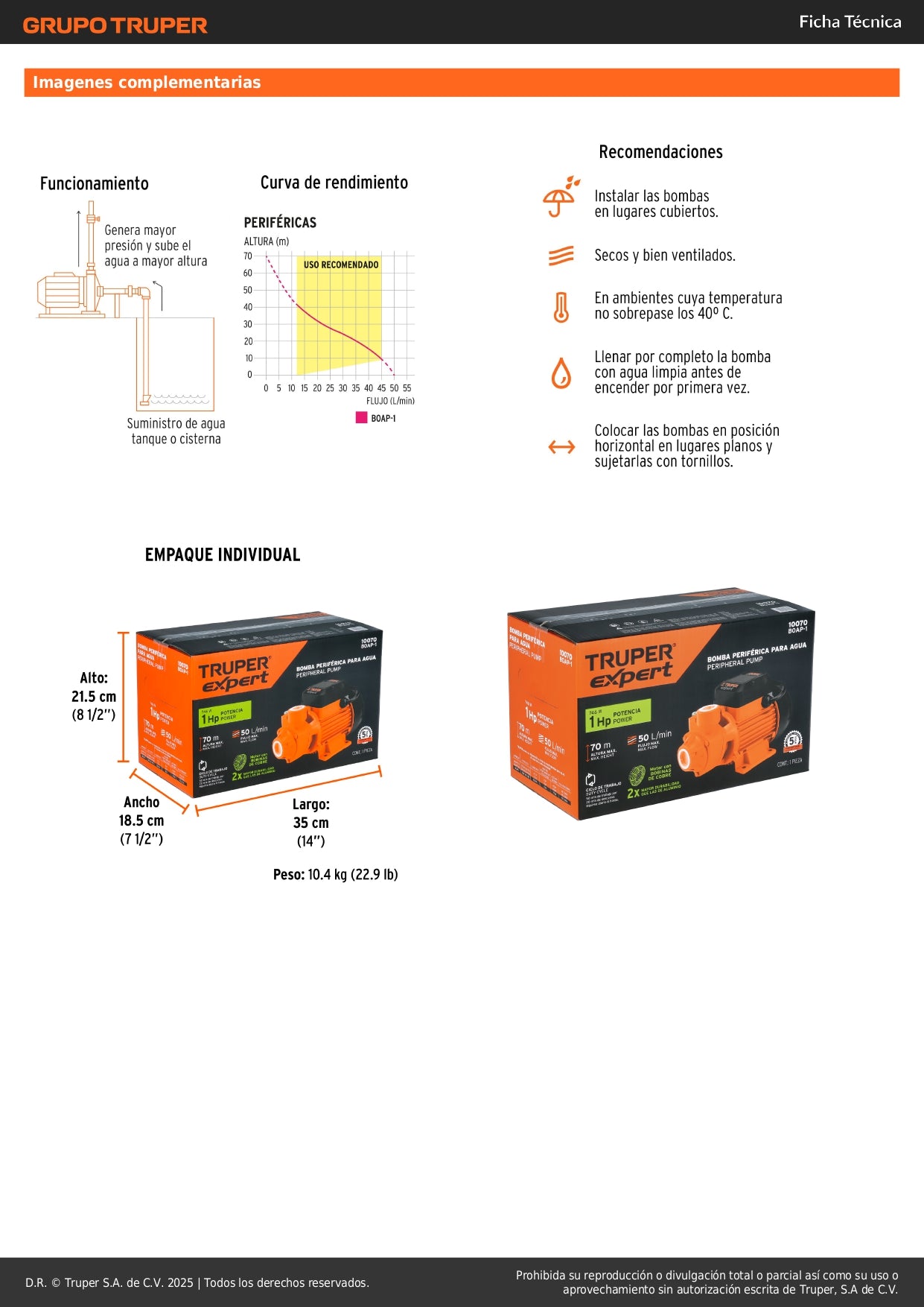 La bomba EXPERT BOAP-1 es perfecta para quienes buscan una solución confiable de bombeo con excelente relación calidad-precio. Marca TRUPER®, garantía de calidad mexicana.