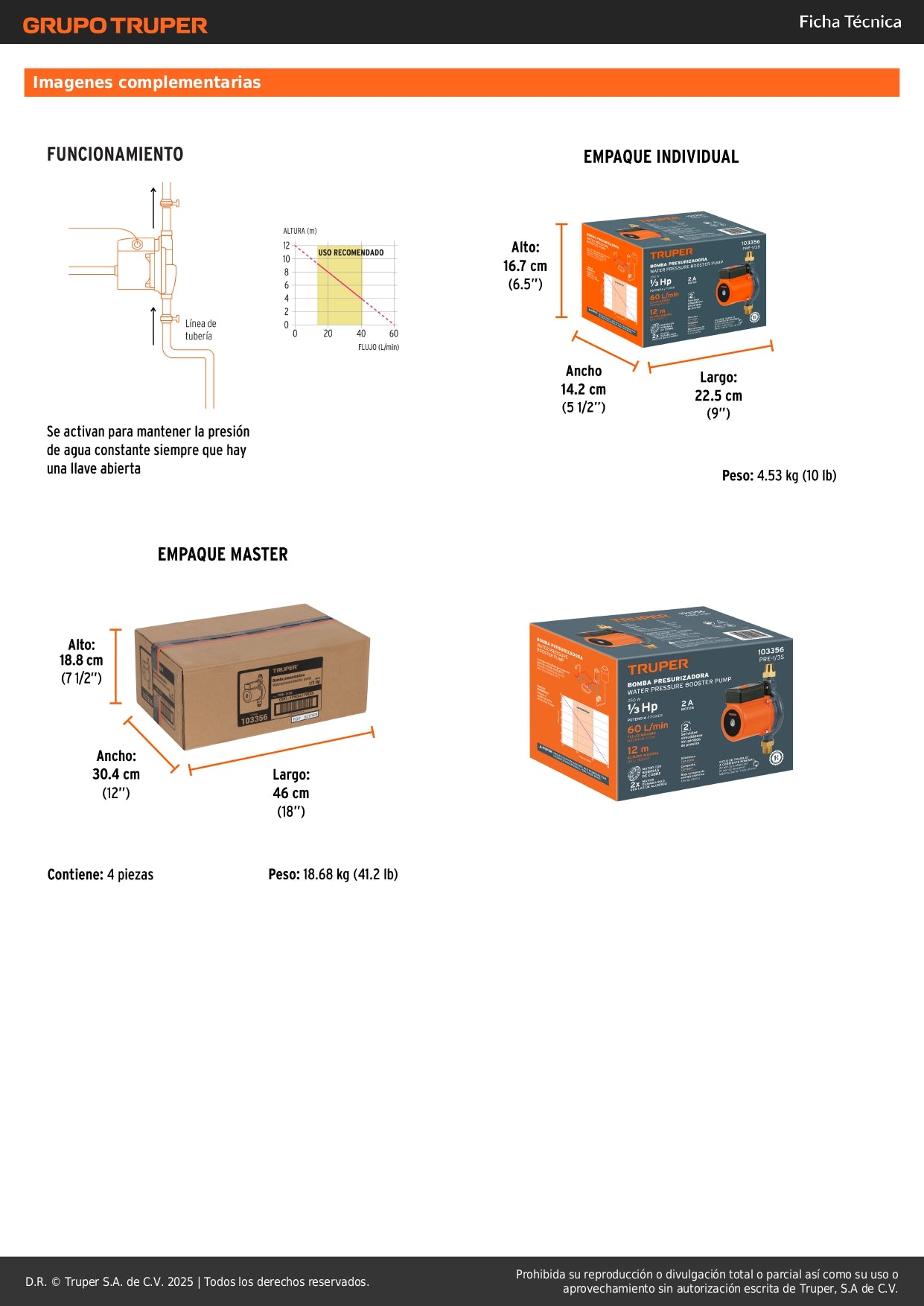 Imagina disfrutar de una ducha revitalizante con presión constante, lavar tu ropa eficientemente y regar tu jardín sin problemas. Esta bomba presurizadora TRUPER transforma tu experiencia diaria con el agua, garantizando presión uniforme en todos los puntos de uso de tu hogar.