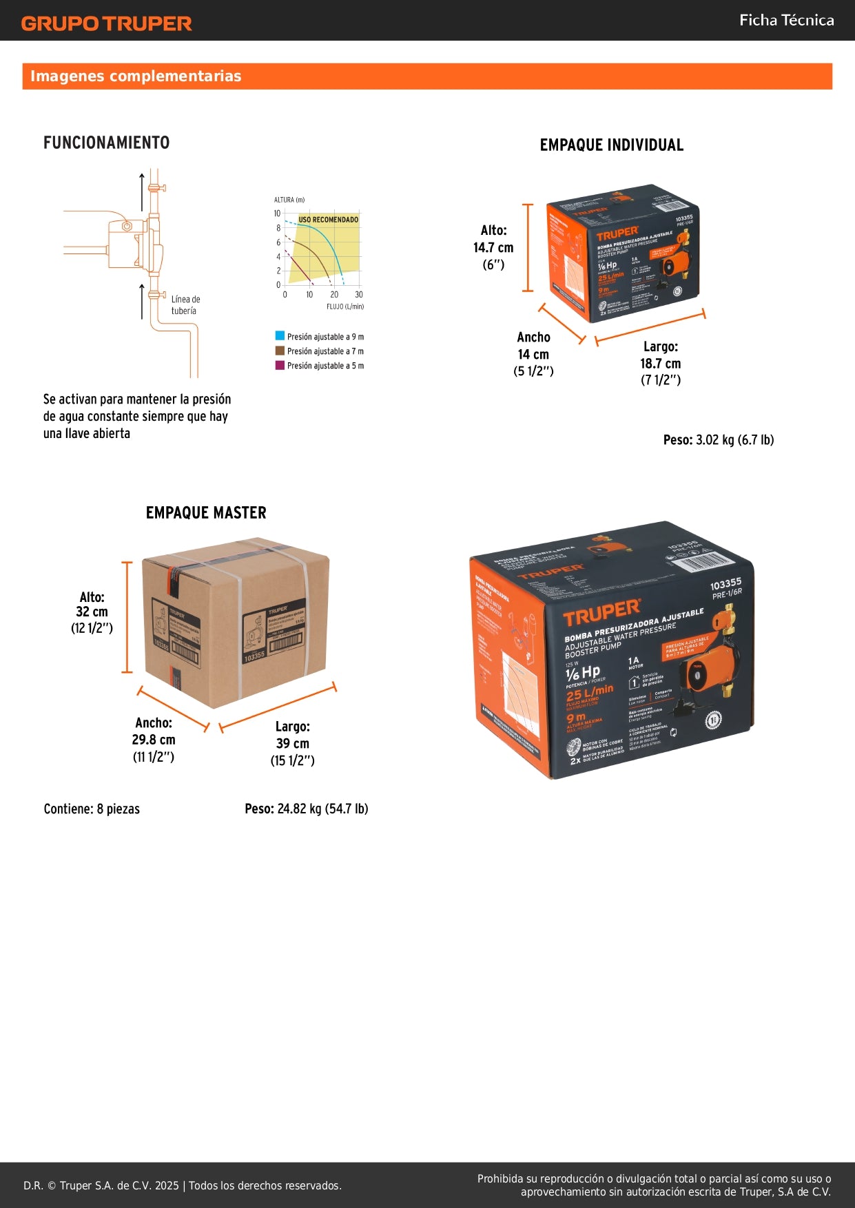 Bomba Presurizadora TRUPER 1/6 HP - Solución Profesional para Baja Presión de Agua
