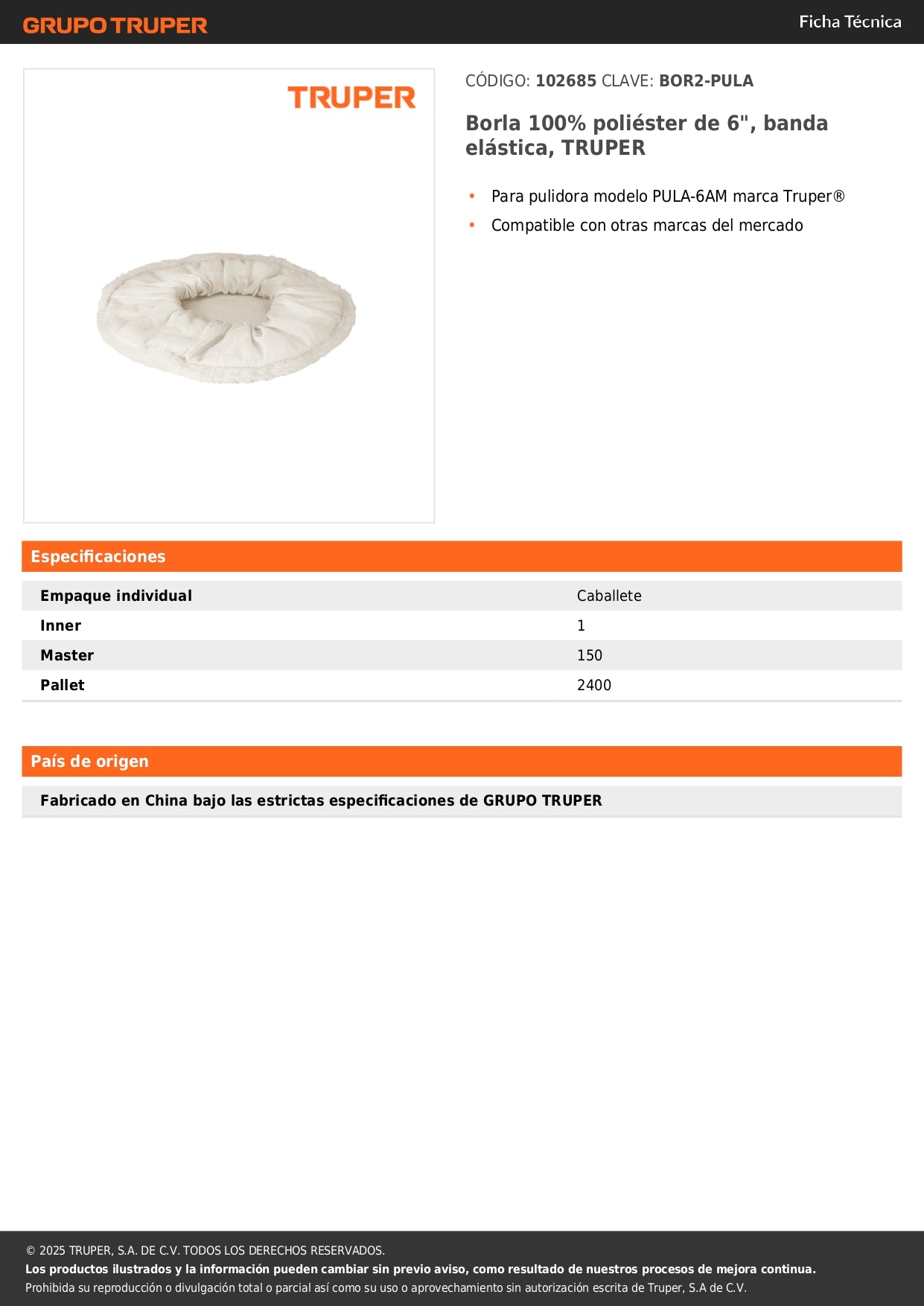Borla 100% poliéster de 6", banda elástica, TRUPER