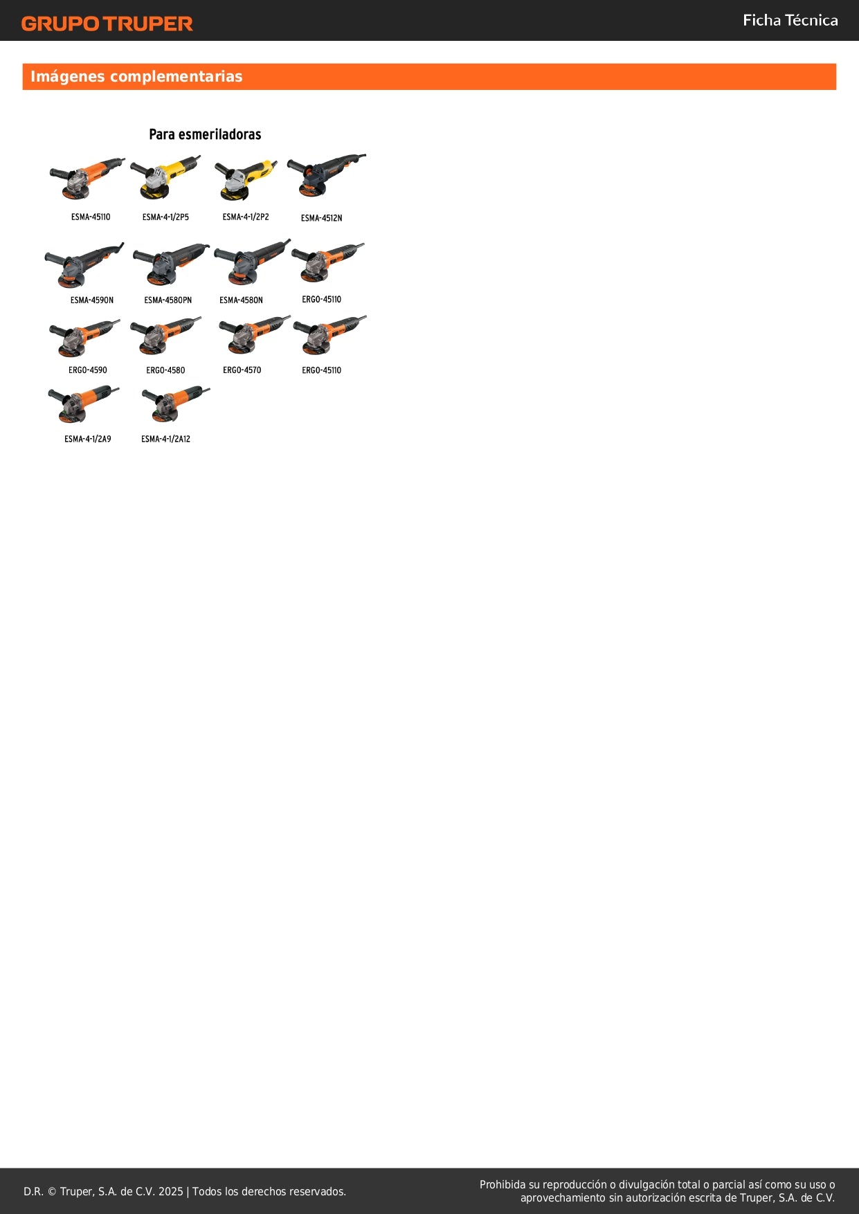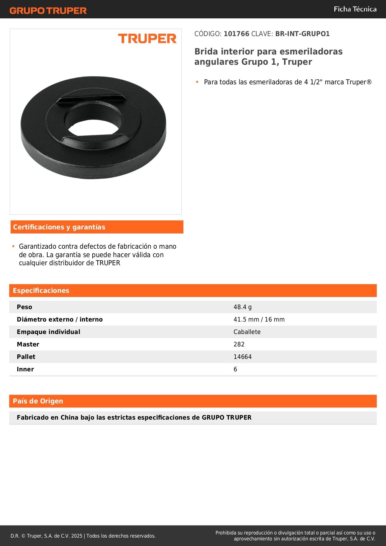 - Compatibilidad: Esmeriladoras angulares TRUPER Grupo 1