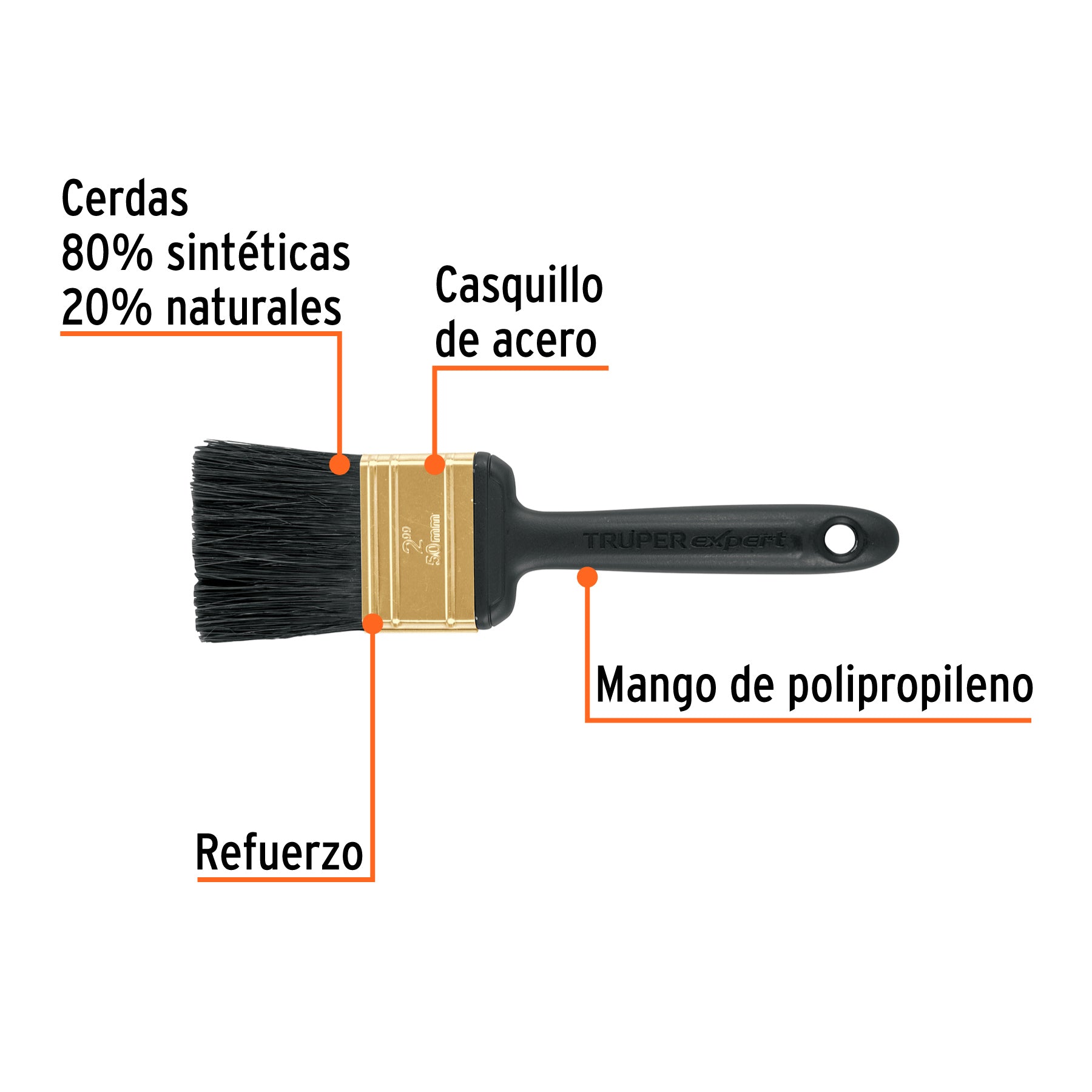 Brocha Profesional 2 Pulgadas Truper Expert BRT-2X - Cerdas Sintéticas y Naturales para Pintura Uniforme en Concreto, Metal, Estuco y Madera