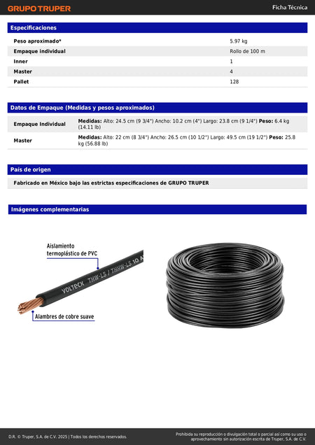 Cable THHW-LS 10 AWG Negro 100m Volteck - Solución Profesional para Instalaciones Eléctricas Seguras