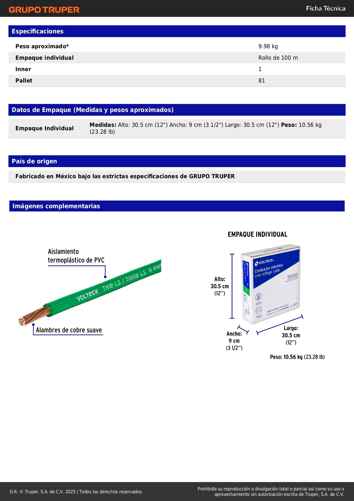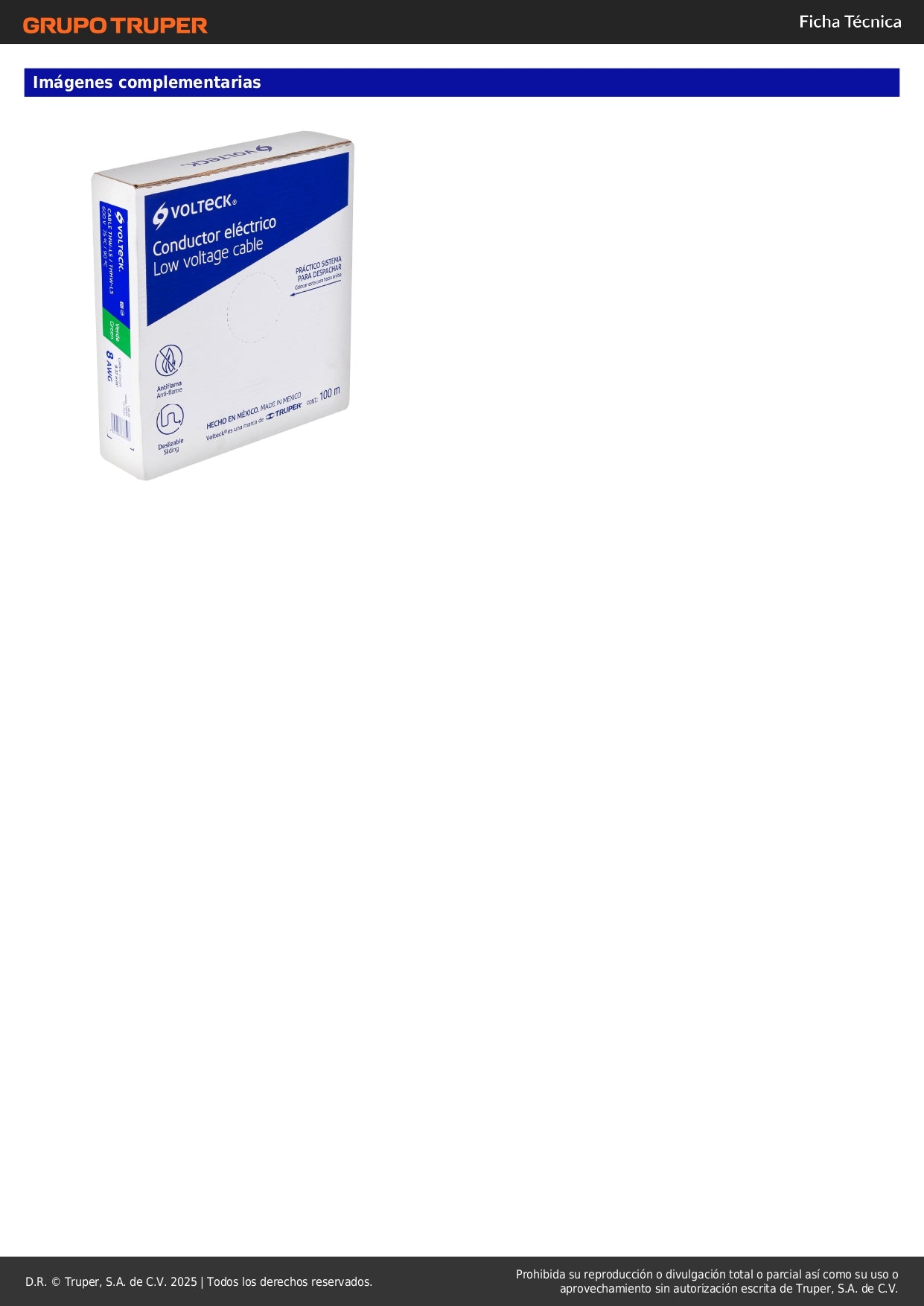 Especificaciones técnicas completas en las imágenes del producto. Cable conductor eléctrico profesional para instalación eléctrica segura y confiable.
