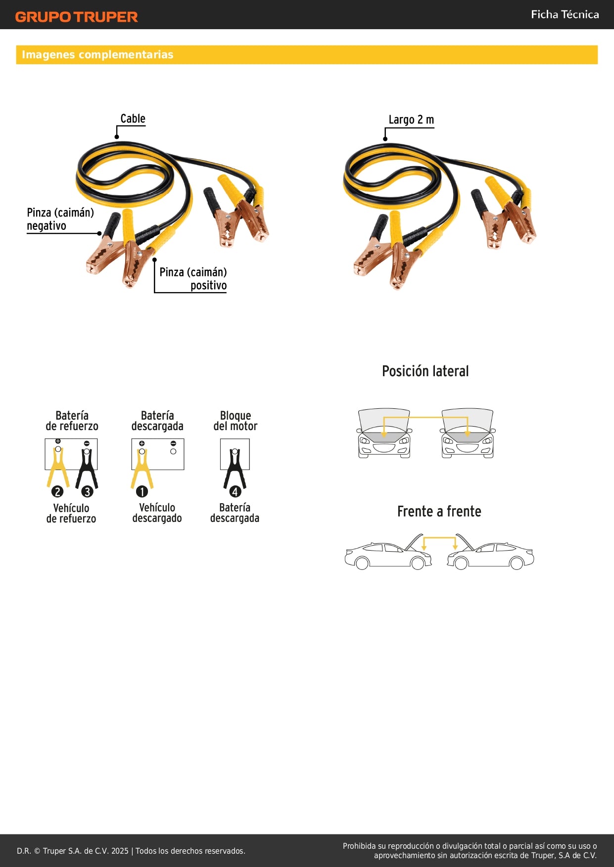 - Longitud de 2 metros - Alcance adecuado para conectar baterías entre vehículos