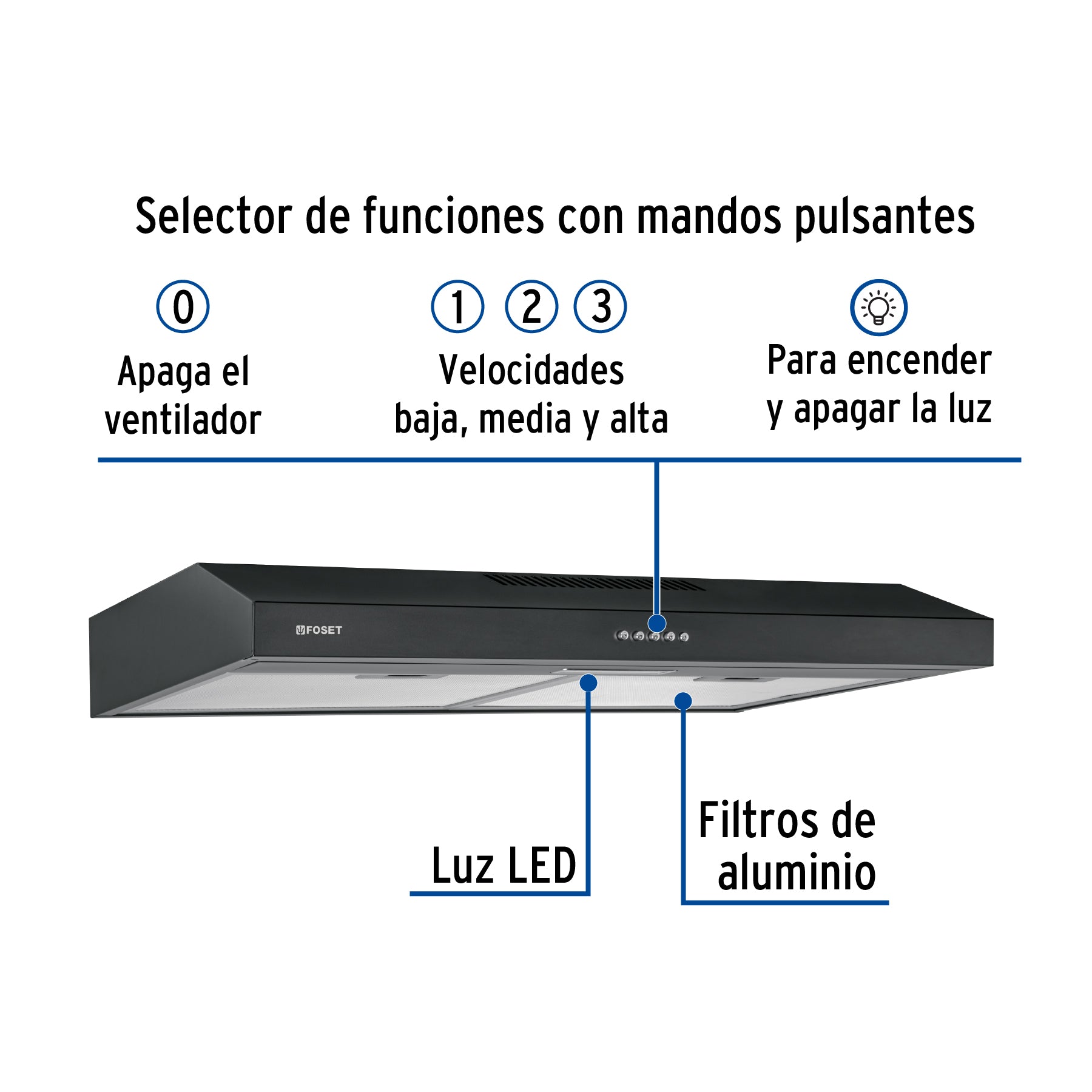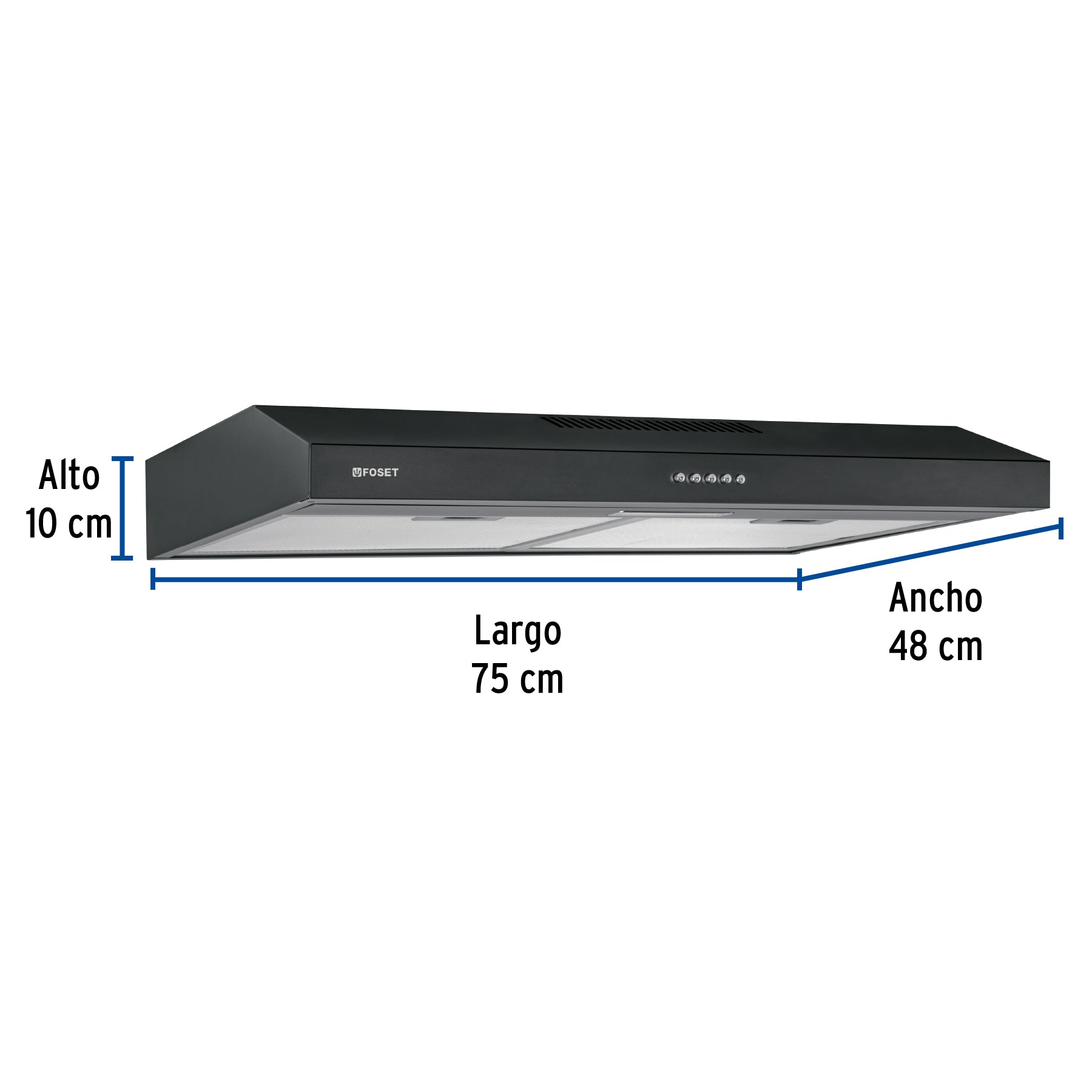Campana Extractora Empotrable 75cm FOSET Negra - 3 Velocidades LED Filtros Lavables