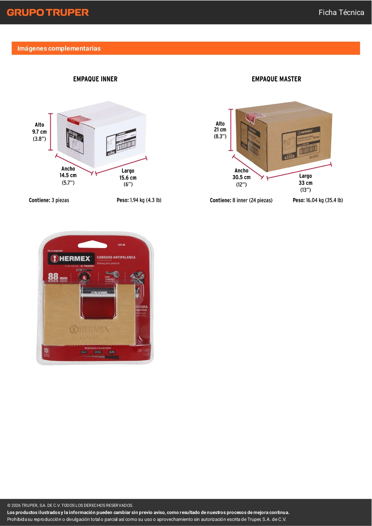 El Candado Antipalanca HERMEX 88mm está diseñado para resistir los ataques más comunes: corte de cable, palanca y golpe directo. Su cuerpo de latón macizo y su arco endurecido lo convierten en la solución ideal para asegurar puertas, portones, bodegas y equipos en exteriores.