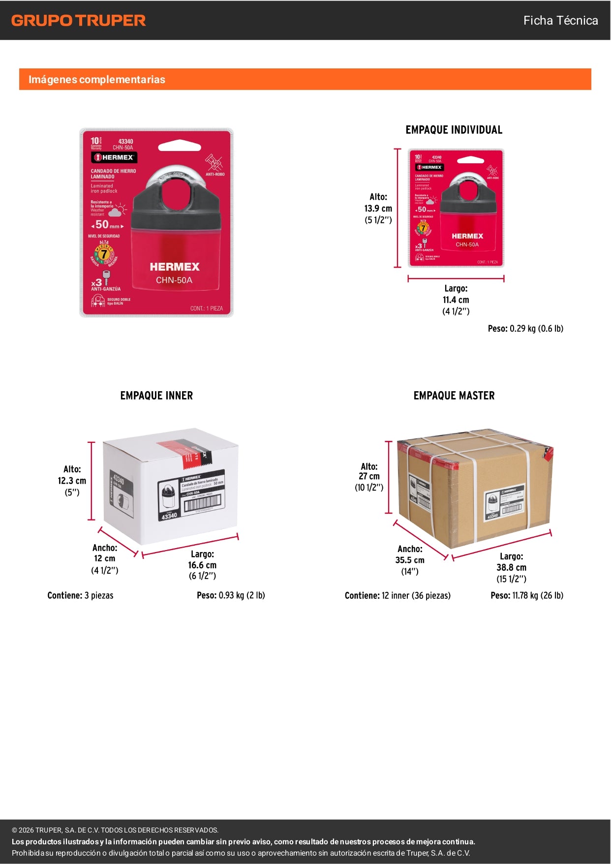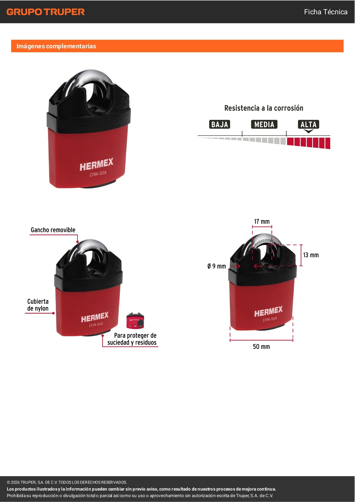 Candado HERMEX 50mm Gancho Protegido | Llave de Disco Alta Seguridad