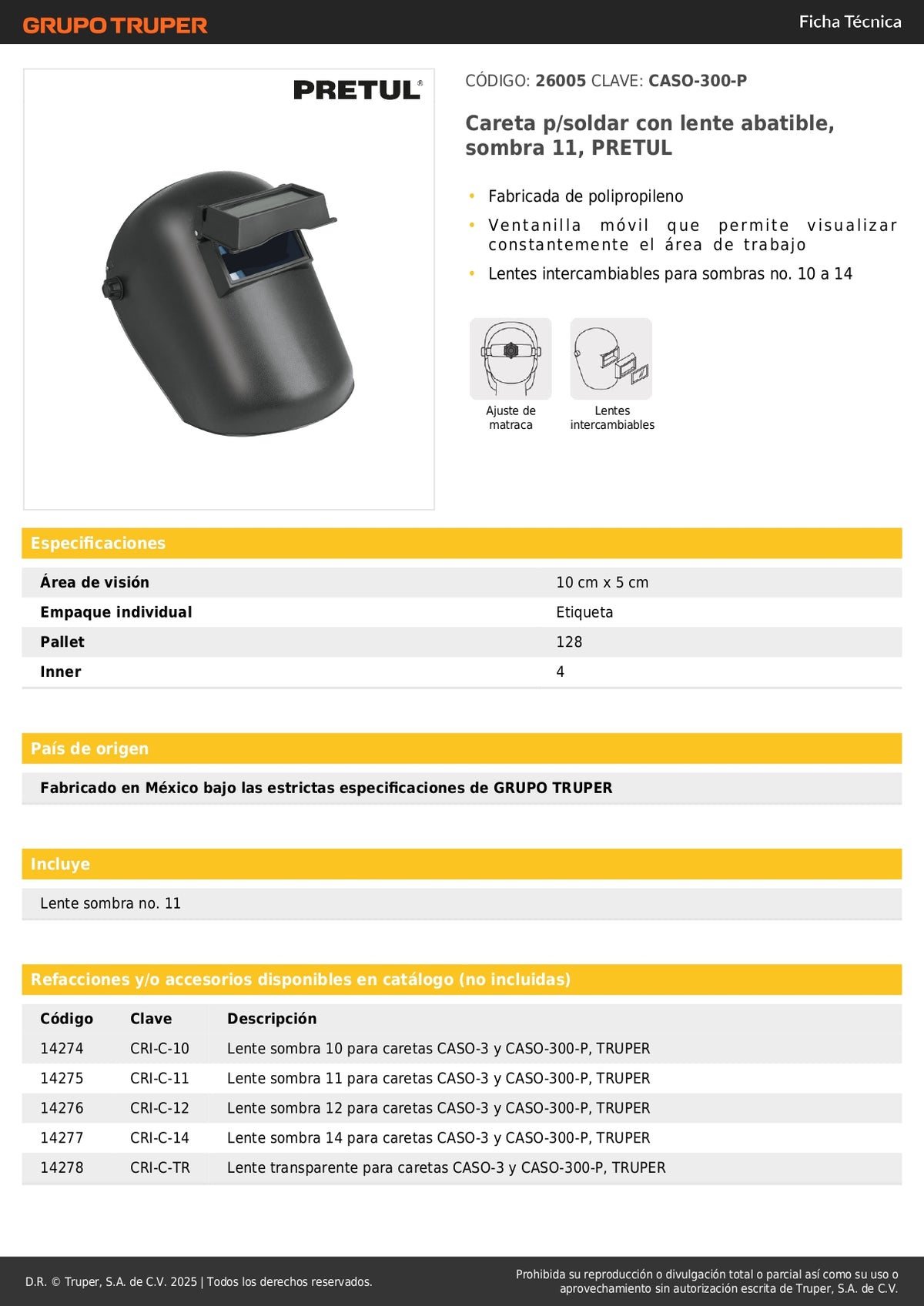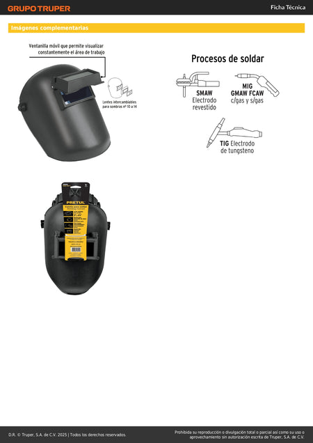 Careta Soldadura Profesional PRETUL CASO-300-P - Lente Abatible Sombra 11 - Protección Completa Ojos y Rostro