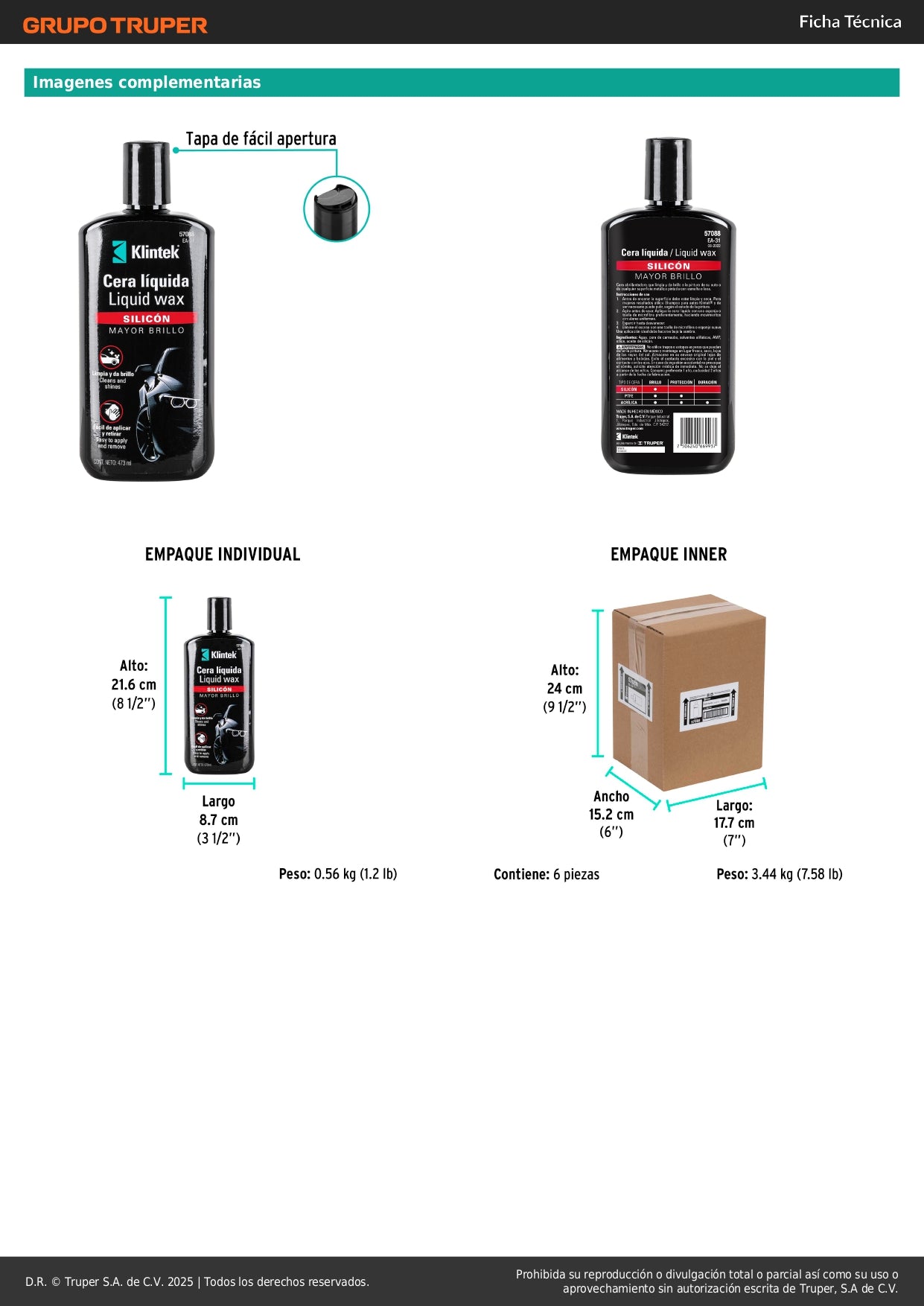 - Fácil aplicación - Sin residuos blancos ni manchas