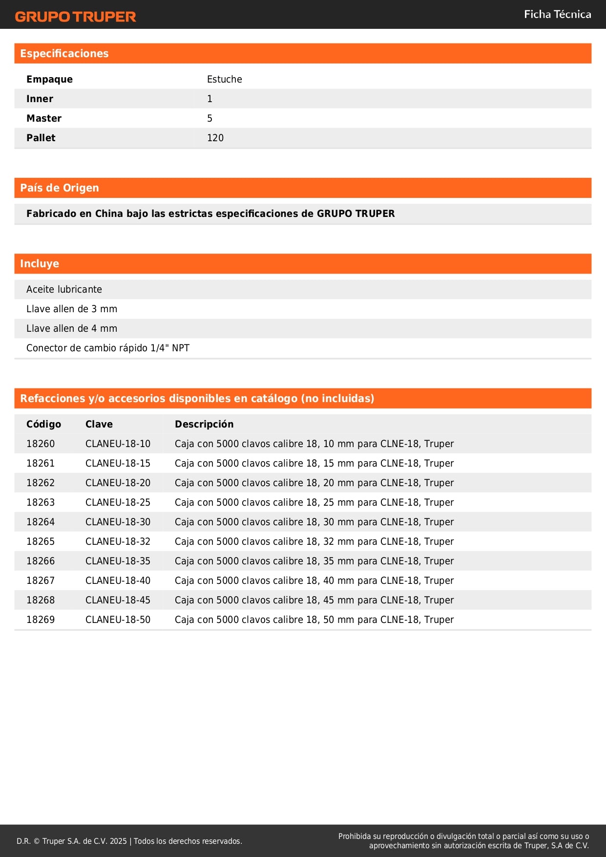 - Compatible con clavos calibre 18