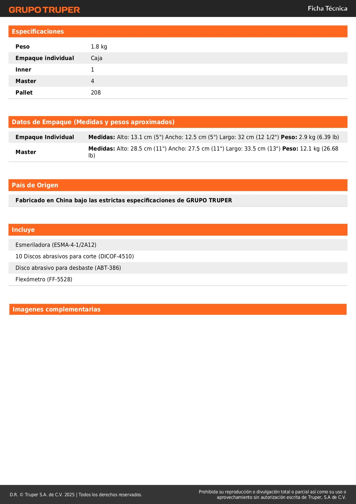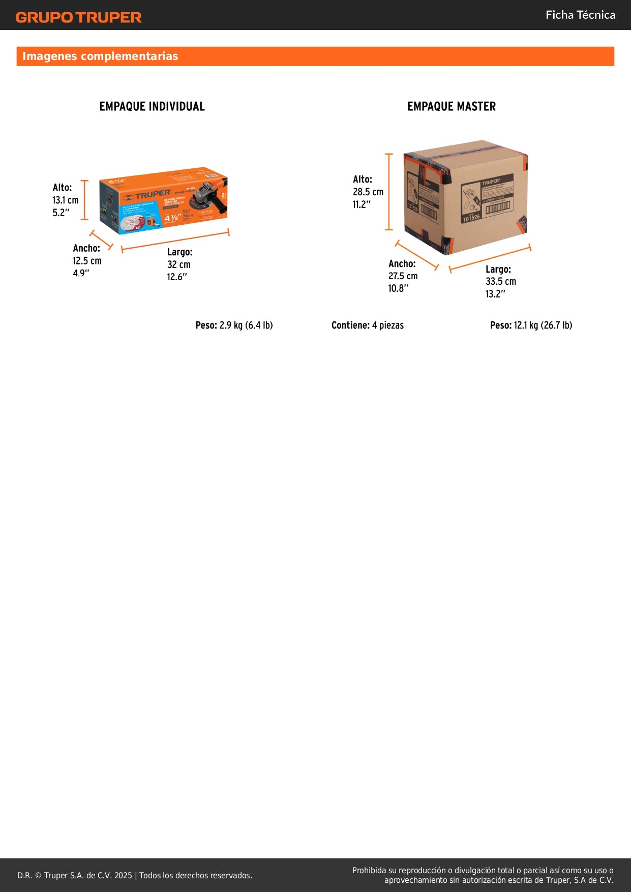 - Disco de 4-1/2 pulgadas: Tamaño estándar profesional para máxima versatilidad