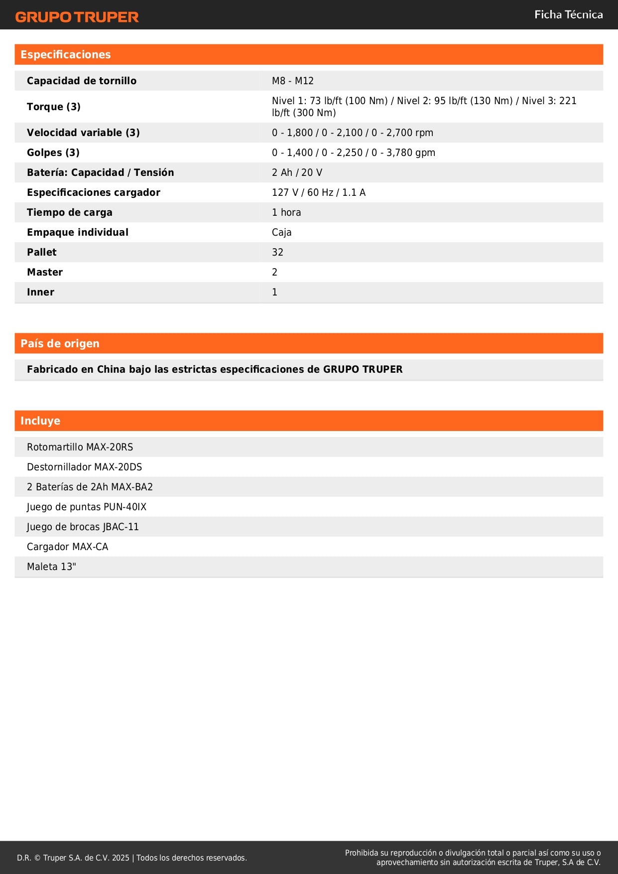 Kit completo 2 en 1 para trabajos profesionales de perforación y atornillado - Este combo MAXCOM-20 incluye rotomartillo inalámbrico y destornillador de impacto con tecnología brushless de alto rendimiento, ideal para construcción, carpintería, instalaciones y mantenimiento.