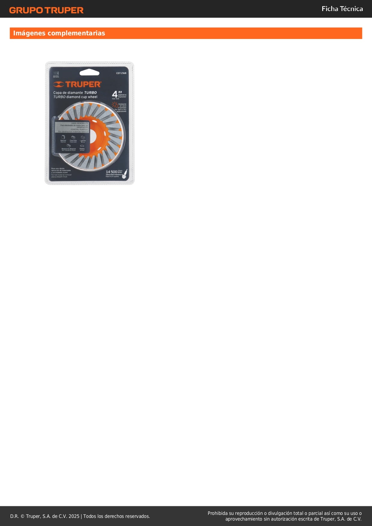 La copa de diamante turbo TRUPER de 4 pulgadas es la herramienta ideal para trabajos de desbaste y pulido de concreto, granito, mármol y piedra natural. Diseñada para uso profesional en construcción y acabados.
