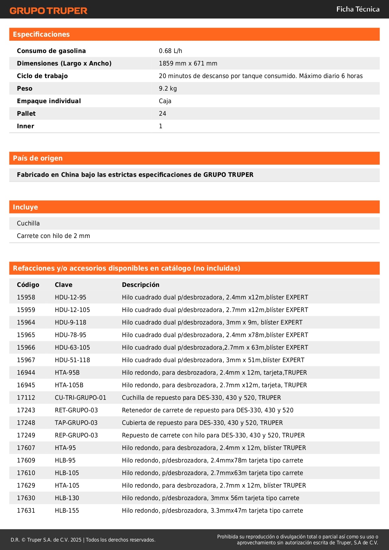 - Versatilidad: Corta maleza, césped, arbustos y vegetación densa