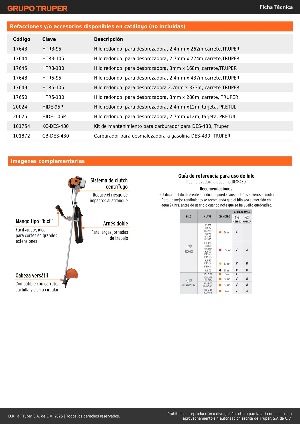 La desmalezadora de gasolina 43cc DES-430 es la herramienta profesional ideal para cortar maleza, césped y arbustos de forma eficiente. Con su motor de 1.7 HP y eje recto de aluminio, ofrece durabilidad y rendimiento superior en trabajos de jardinería y mantenimiento de áreas verdes.