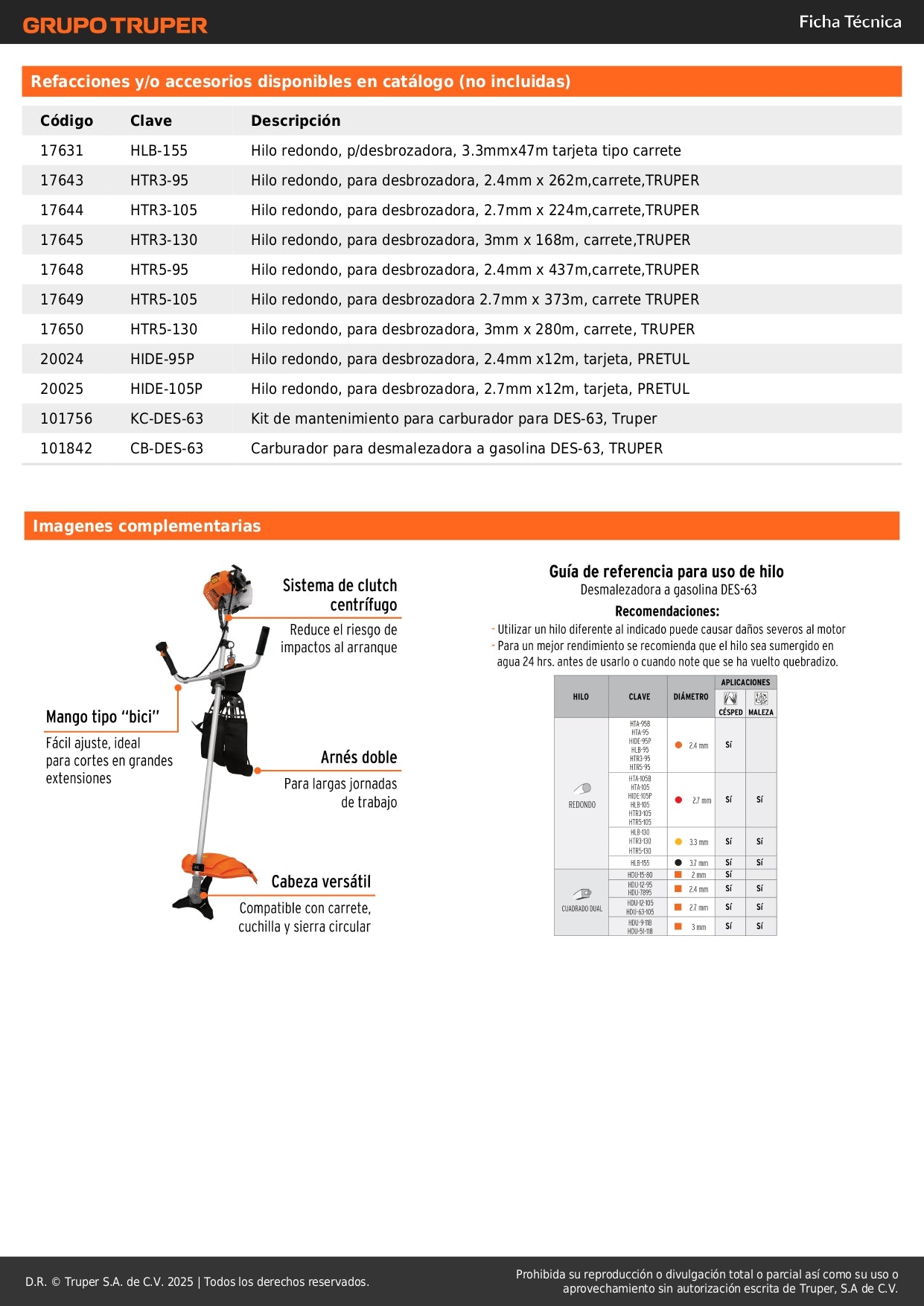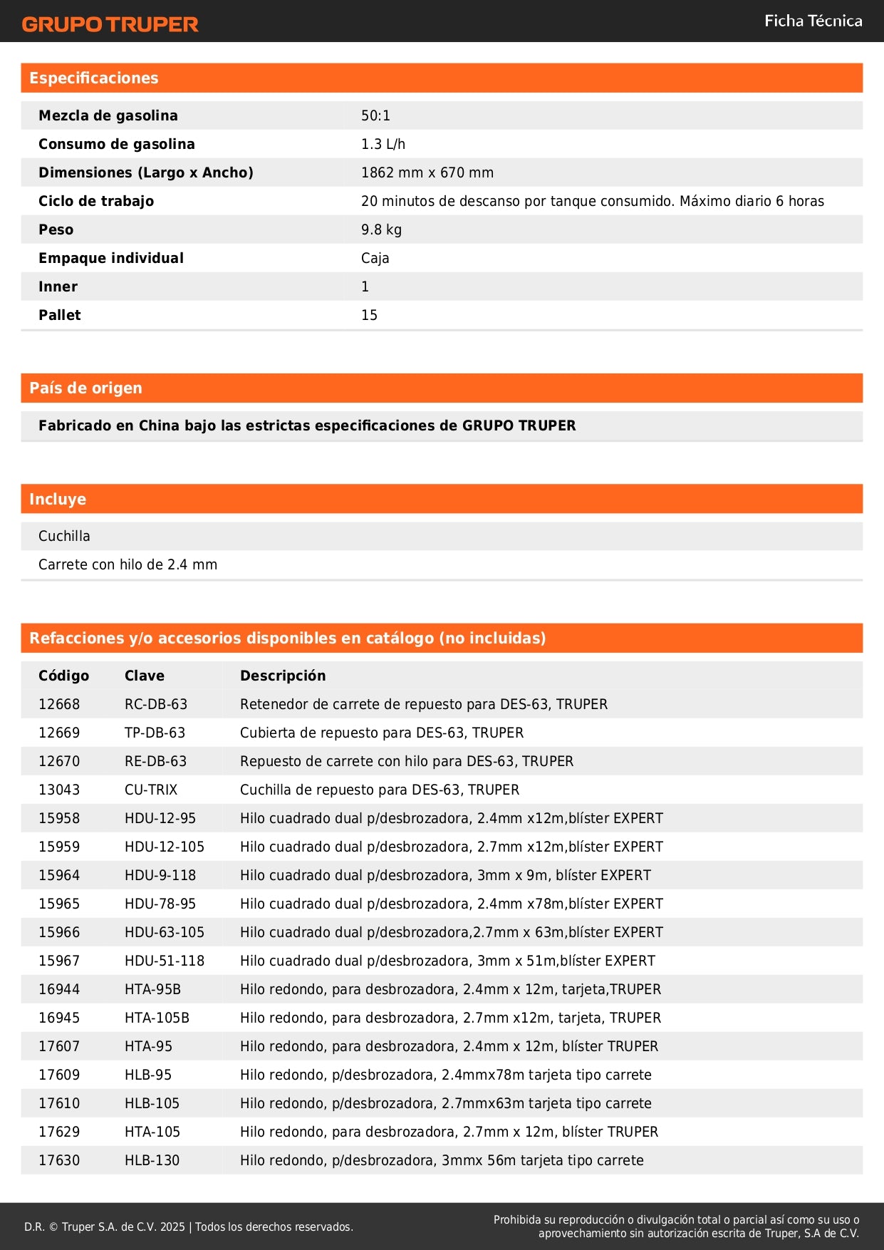 Perfecta para cortar maleza, desbroce de terrenos, mantenimiento de césped, limpieza de arbustos, y trabajos de jardinería profesional. Ideal para uso doméstico, agrícola y comercial.