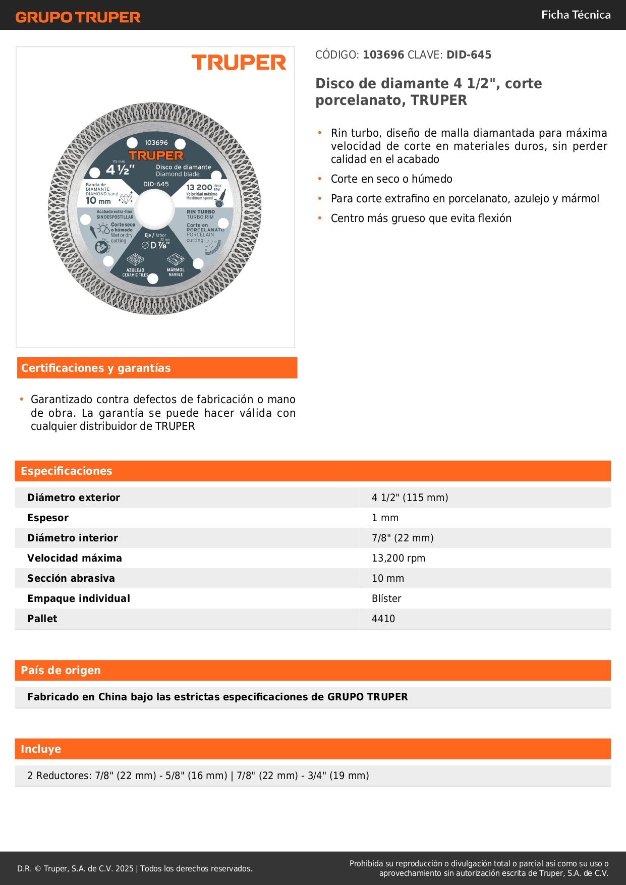 - ✓ Corte limpio y preciso en porcelanato, cerámica, azulejo y baldosas