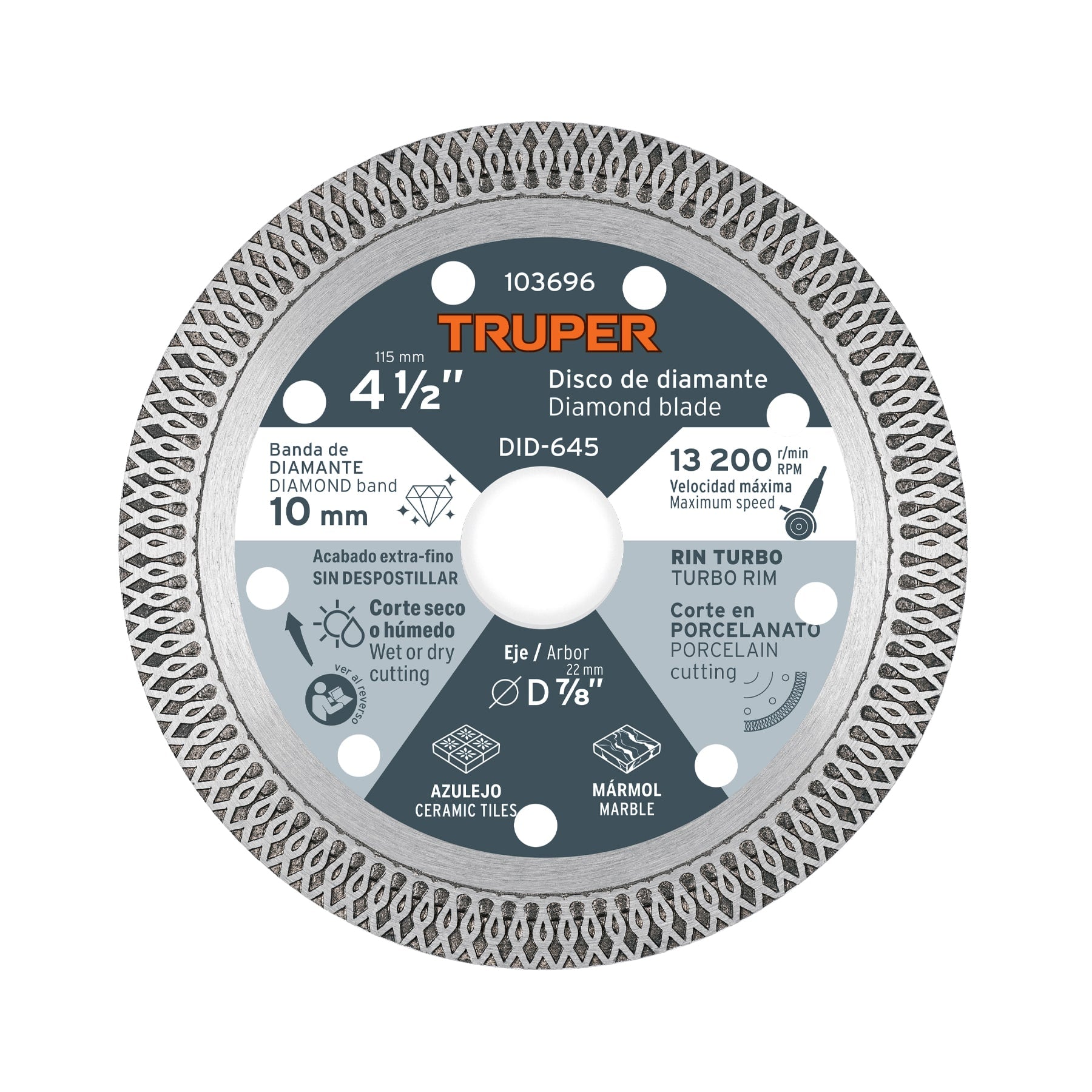 Disco de Diamante 4 1/2" para Corte de Porcelanato TRUPER - Precisión Profesional
