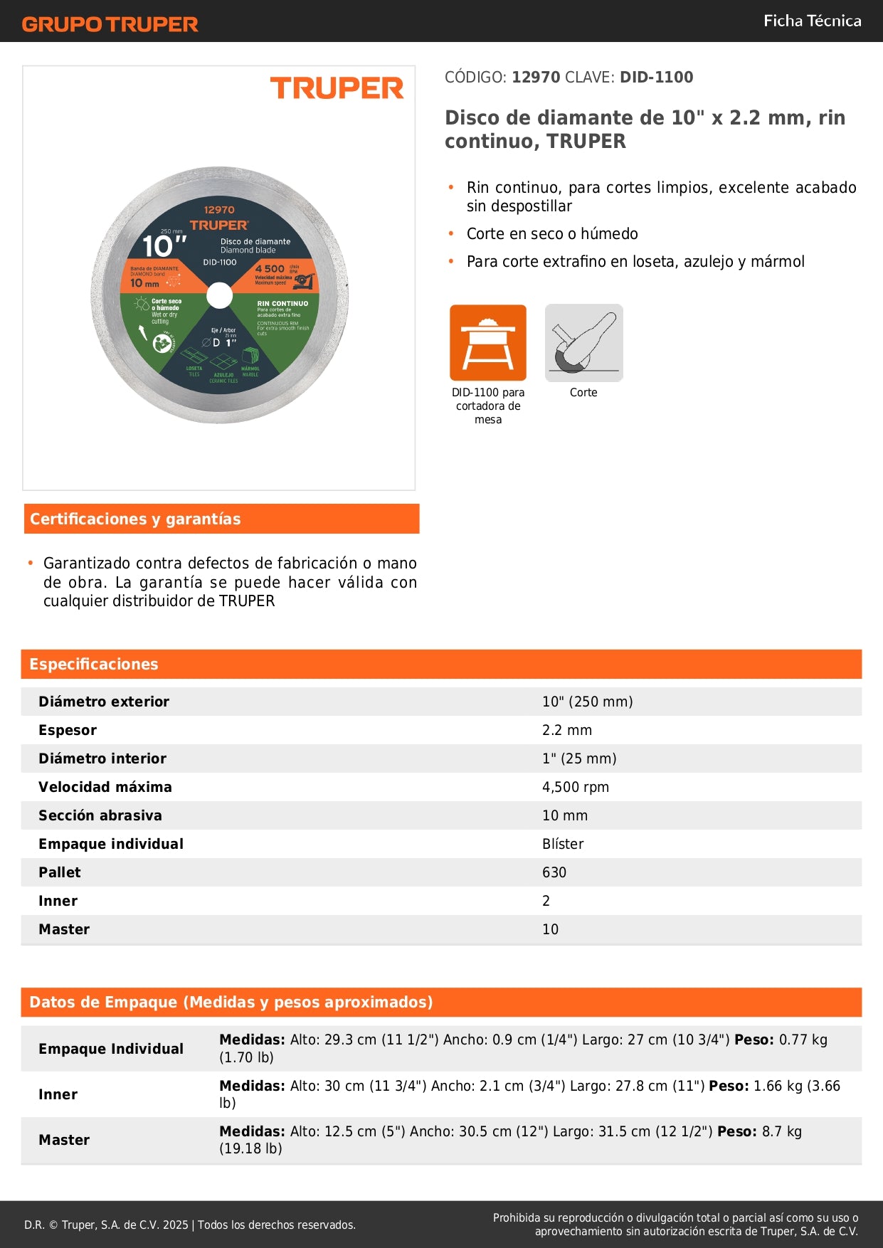 Marca TRUPER: Calidad garantizada y rendimiento profesional en cada corte. SKU: 12970