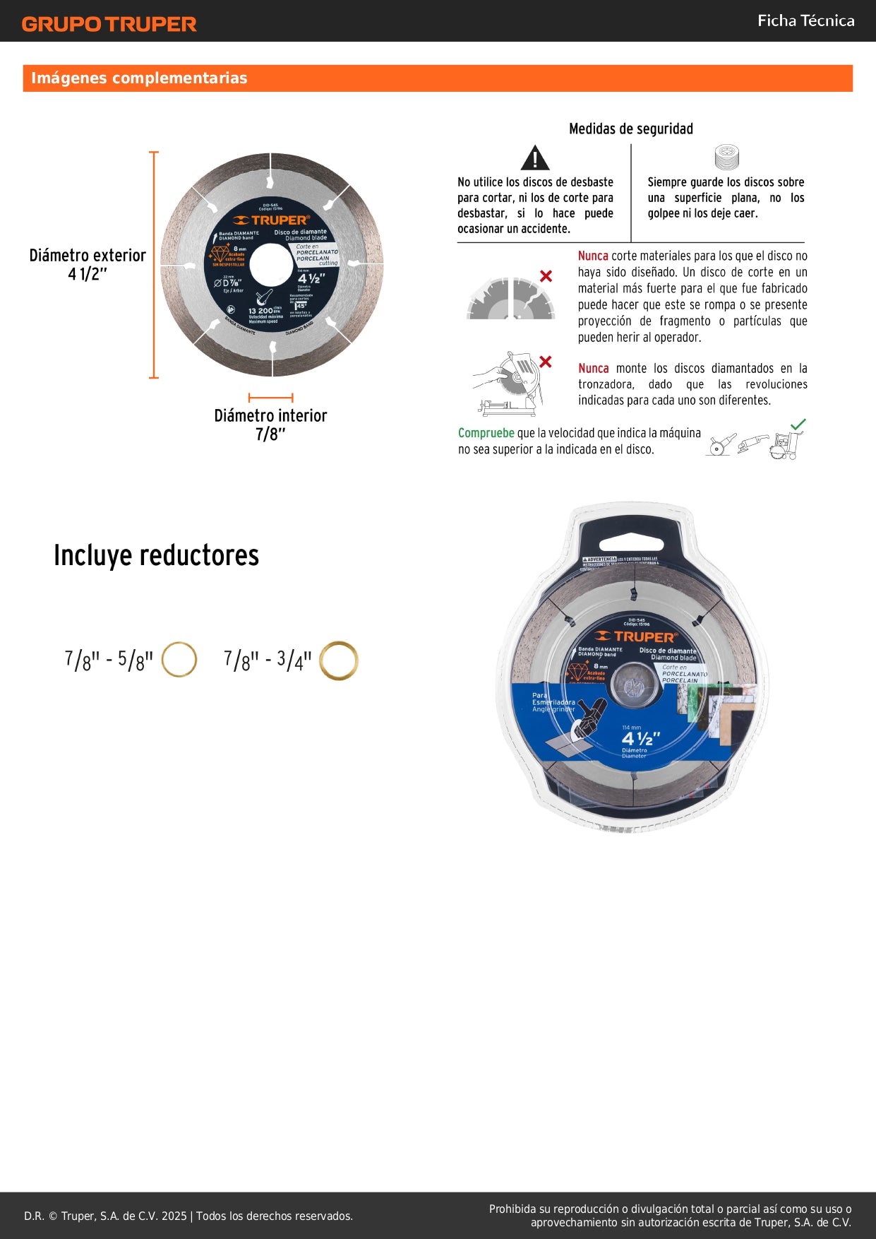 Disco de Diamante TRUPER® 4-1/2" - Corte Profesional de Porcelanato