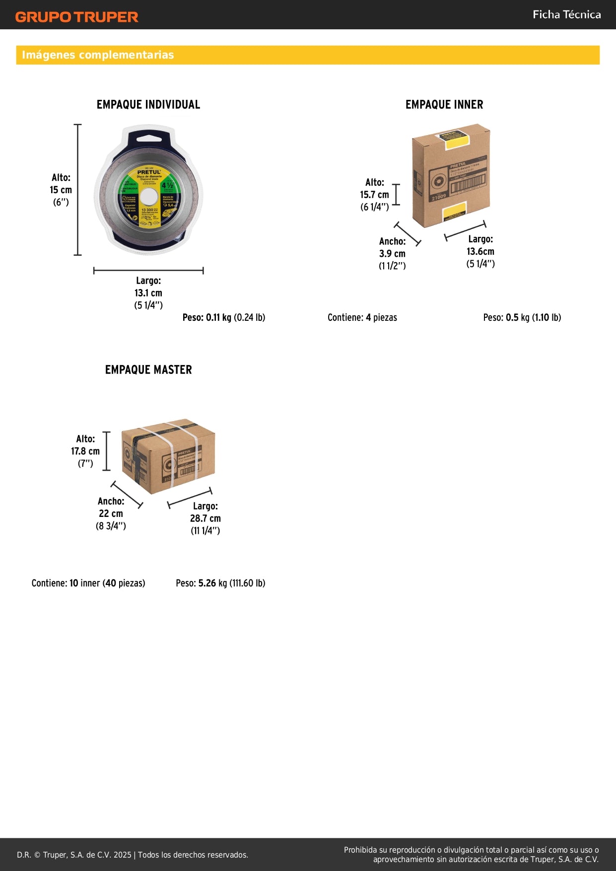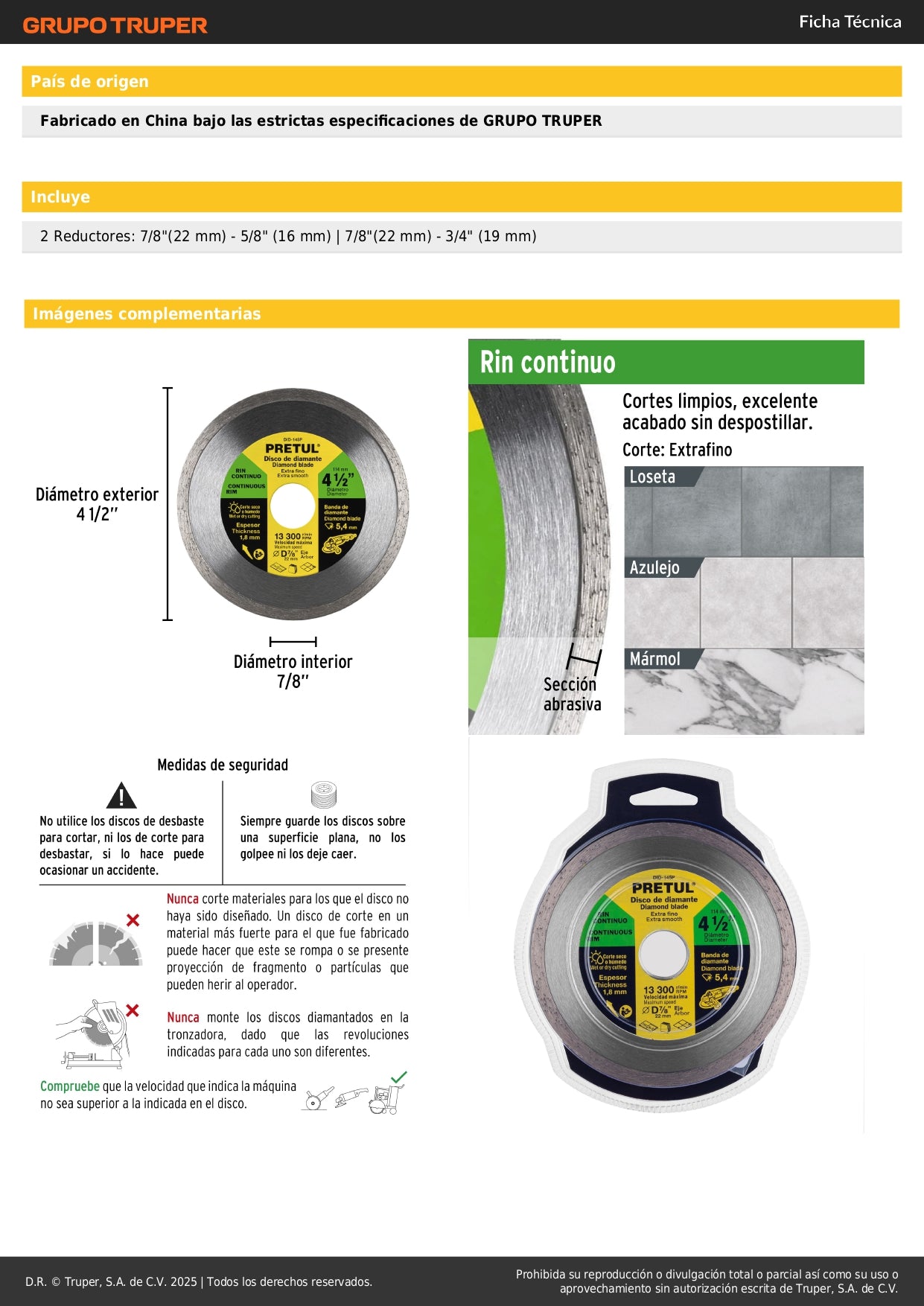 - Diámetro: 4-1/2" (114.3 mm) - Compatible con amoladoras y esmeriladoras estándar