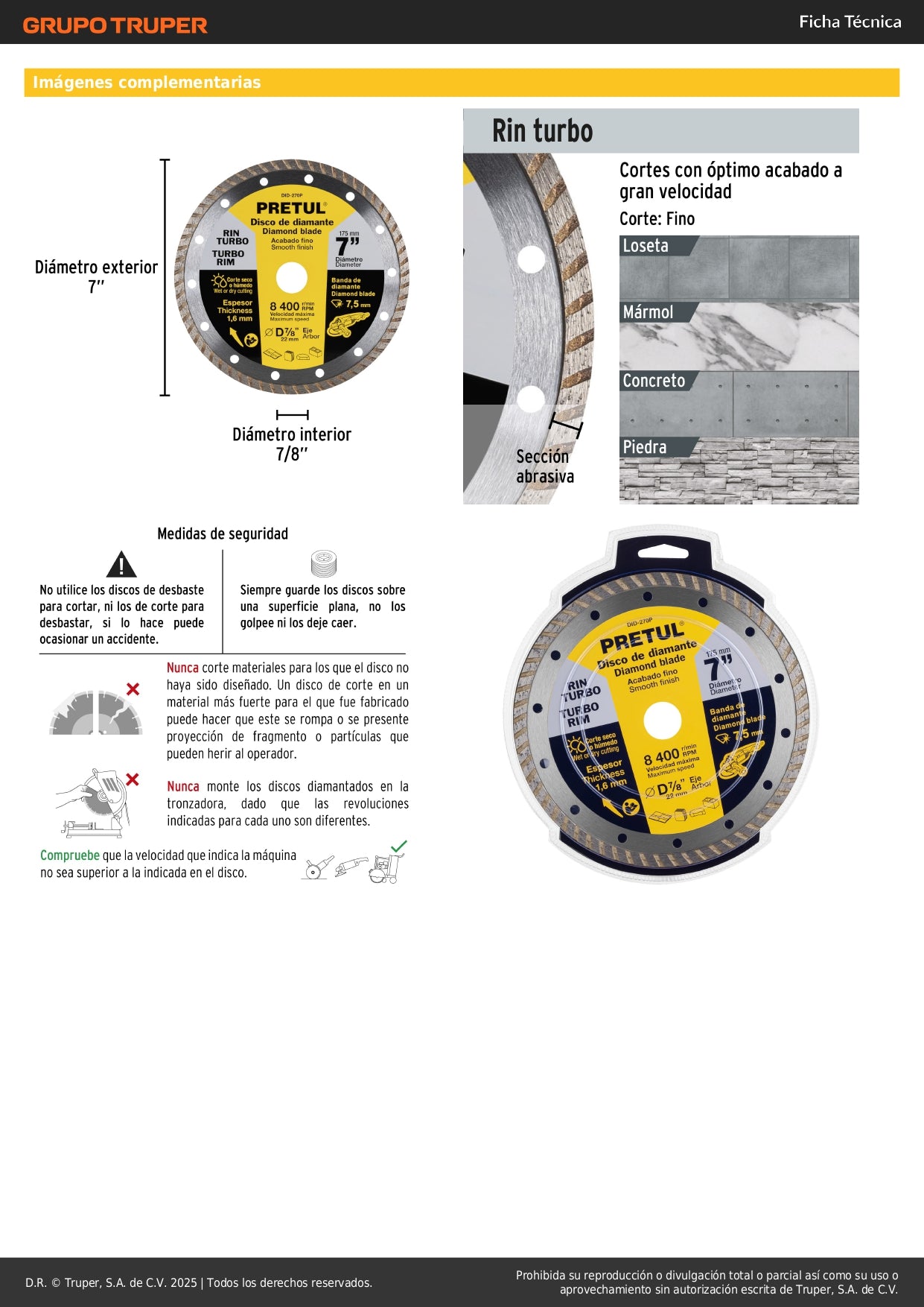 Disco de Diamante 7" Rin Turbo PRETUL - Corte Profesional