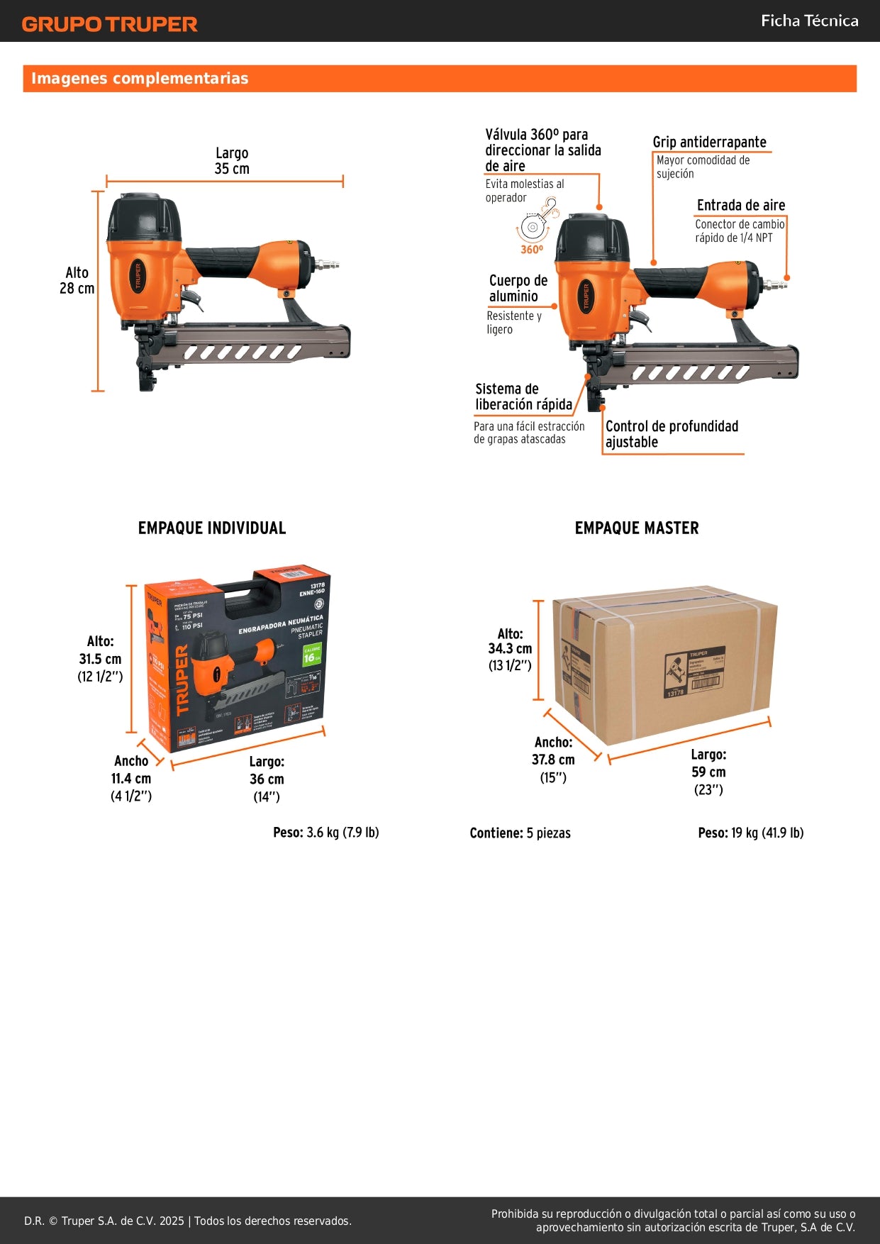 La engrapadora neumática TRUPER calibre 16 es la solución profesional ideal para trabajos de tapicería, carpintería y acabados. Diseñada para ofrecer máxima eficiencia y durabilidad en proyectos exigentes.