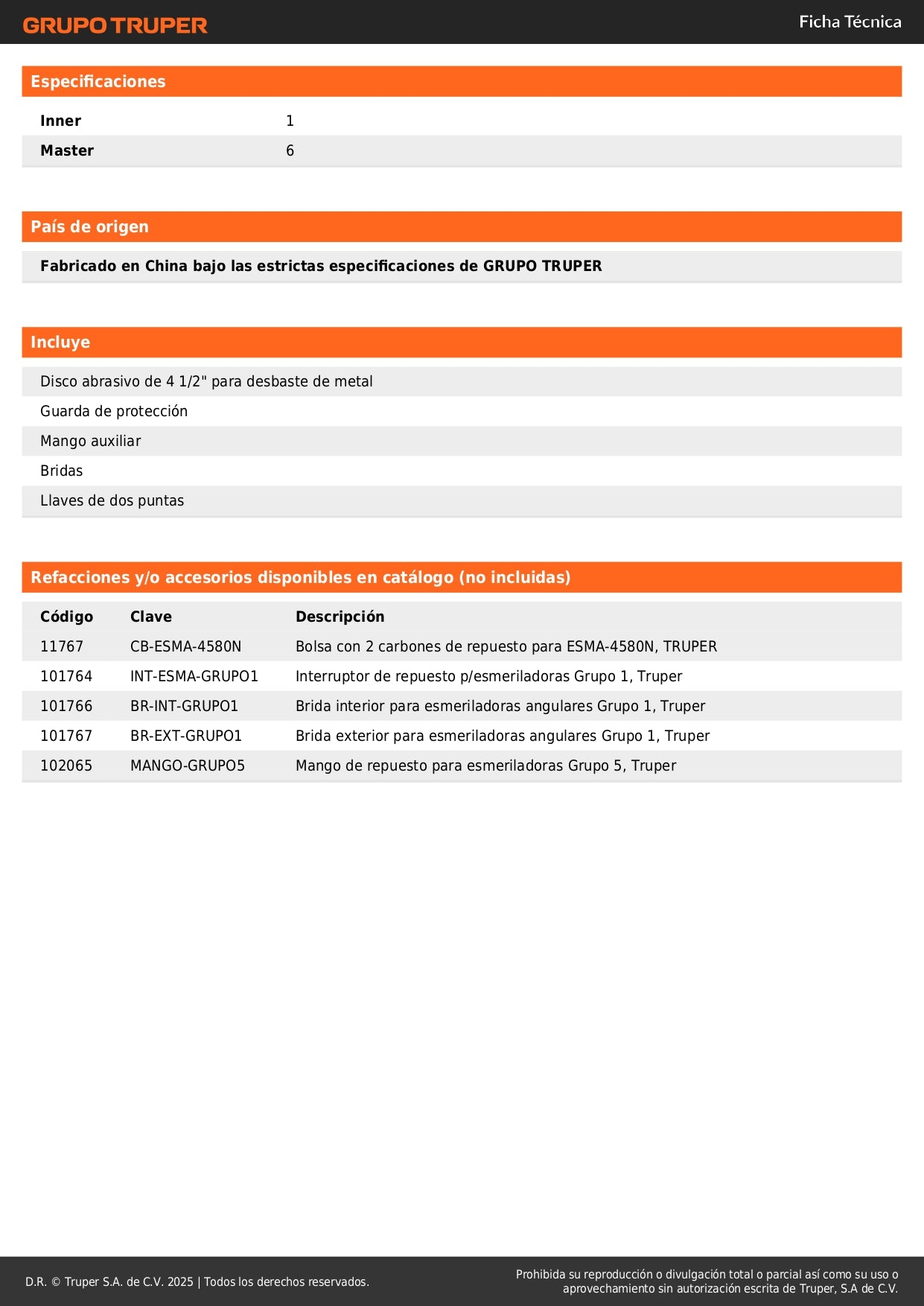 Palabras clave: esmeriladora angular, amoladora 4.5 pulgadas, herramienta eléctrica TRUPER, cortadora de metal, esmeril angular 850W, disco corte acero, herramienta construcción, esmeriladora industrial, amoladora profesional, cortadora ladrillo piedra