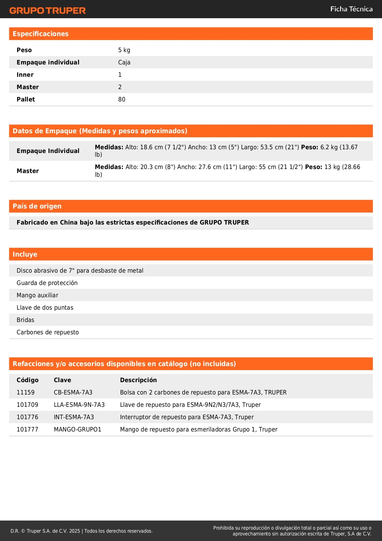 Herramienta industrial de alta calidad respaldada por la garantía TRUPER. Solución completa para trabajos profesionales de corte y esmerilado.