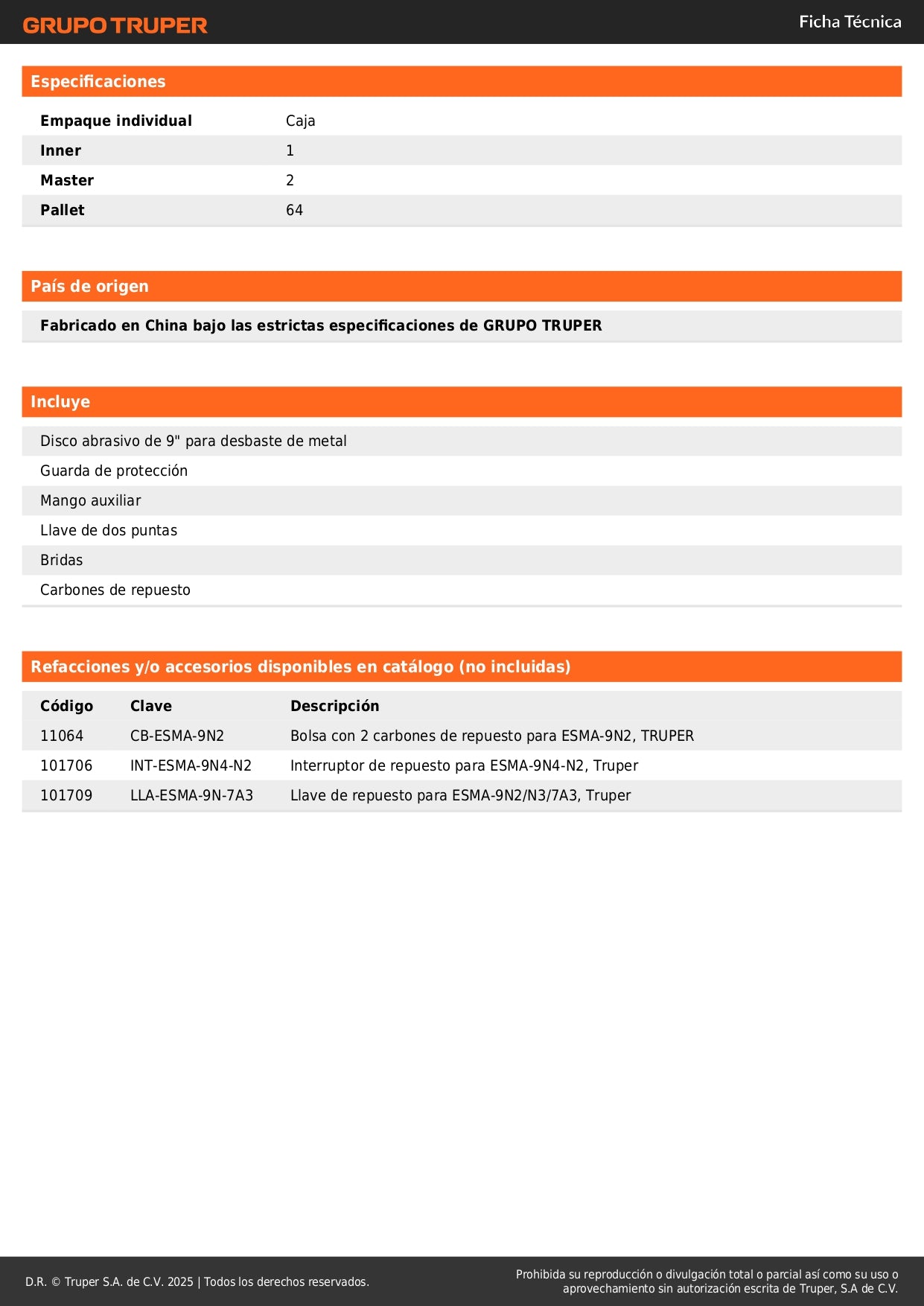 Esmeriladora Angular 9 Pulgadas TRUPER INDUSTRIAL ESMA-9N2 - Potencia y Durabilidad Profesional