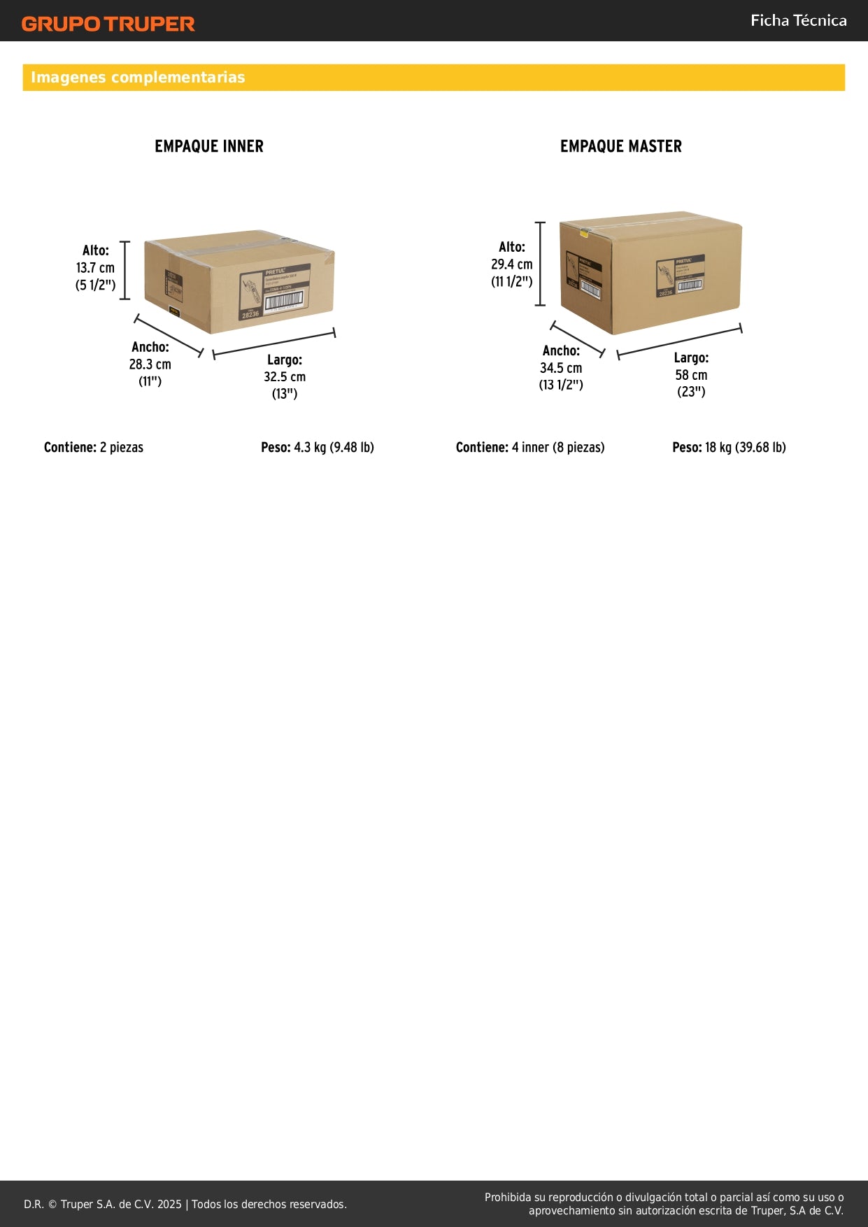 Calidad TRUPER® respaldada por años de experiencia en herramientas profesionales. Motor eficiente que garantiza mayor vida útil, mango ajustable para trabajo cómodo en cualquier ángulo, y construcción resistente para soportar las condiciones más exigentes del trabajo diario.