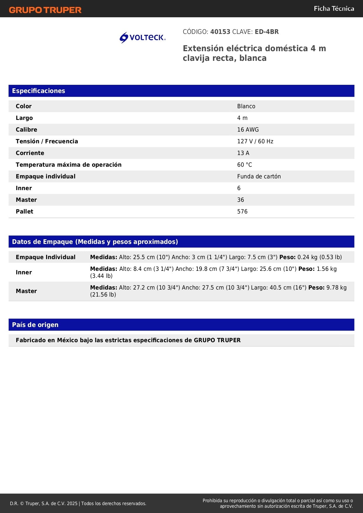 - Marca VOLTECK®: Calidad y confiabilidad garantizada