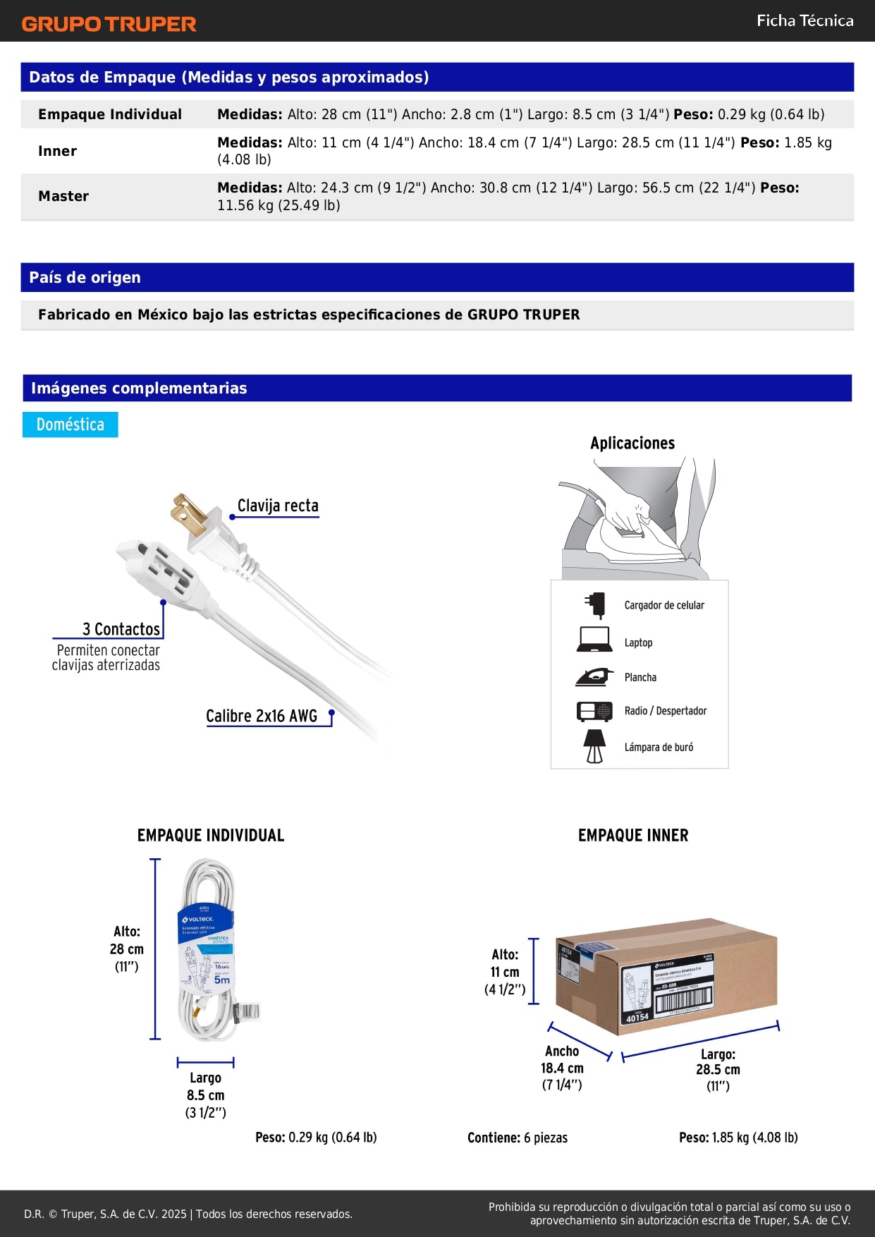 Perfecta para oficinas, talleres, cocinas, salas de estar y cualquier espacio donde necesites conectar múltiples dispositivos eléctricos de forma segura. La extensión VOLTECK ED-5BR es indispensable para tu hogar o negocio.