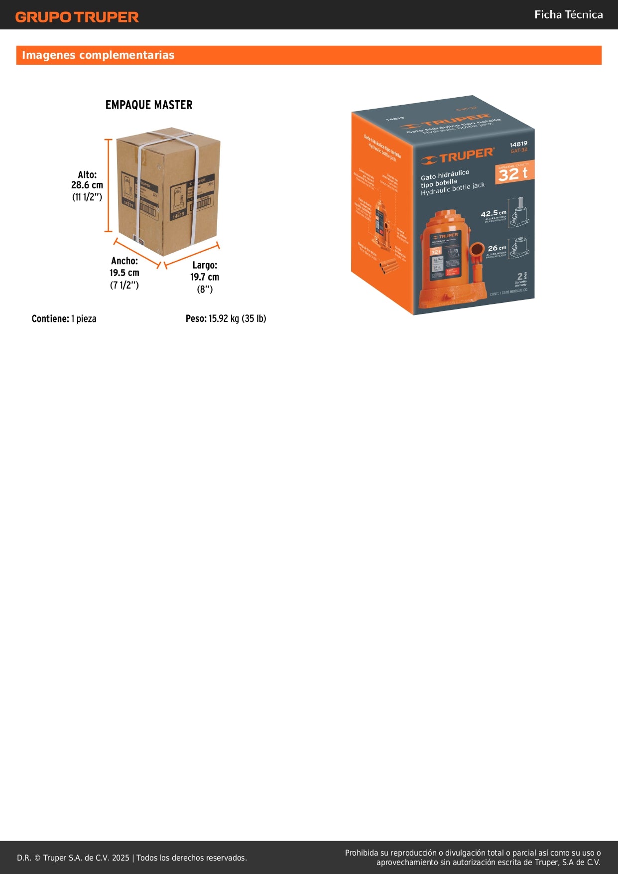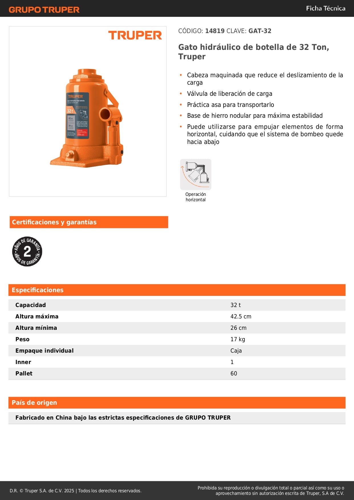 Especificaciones técnicas y garantía: Producto original Truper con respaldo de marca reconocida en herramientas profesionales. Peso: 4 kg. Ideal para uso profesional intensivo.