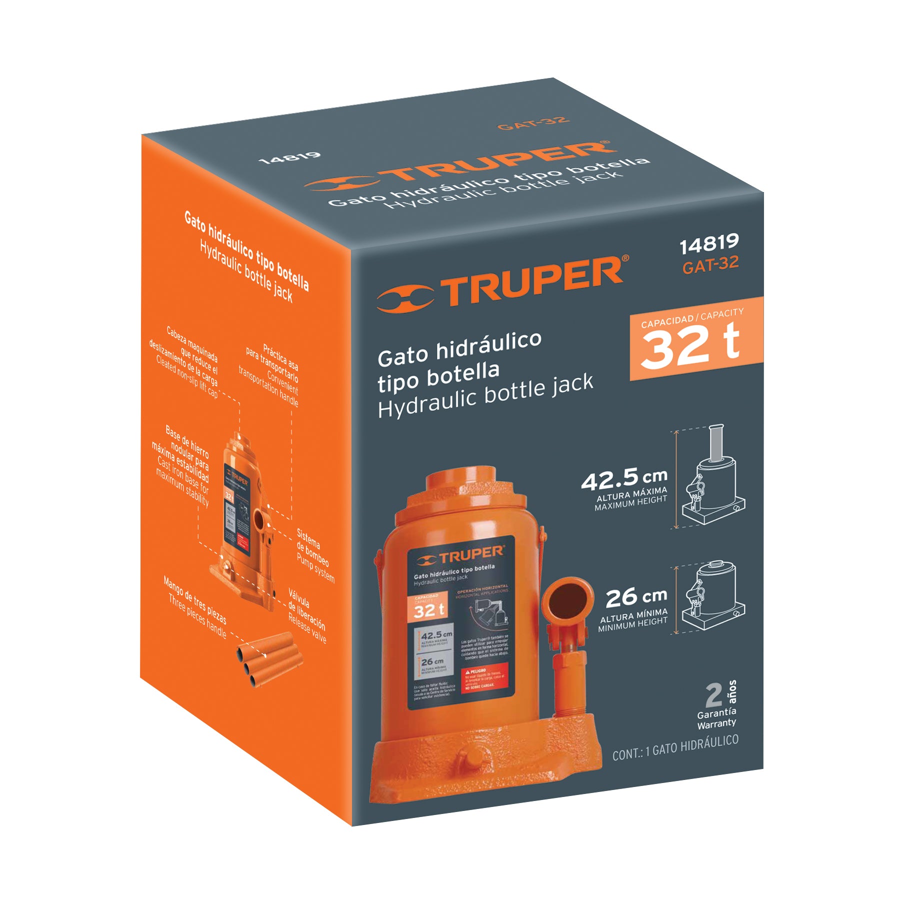 Gato Hidráulico Botella Truper 32 Toneladas GAT-32 - Levanta Cargas Pesadas con Máxima Estabilidad