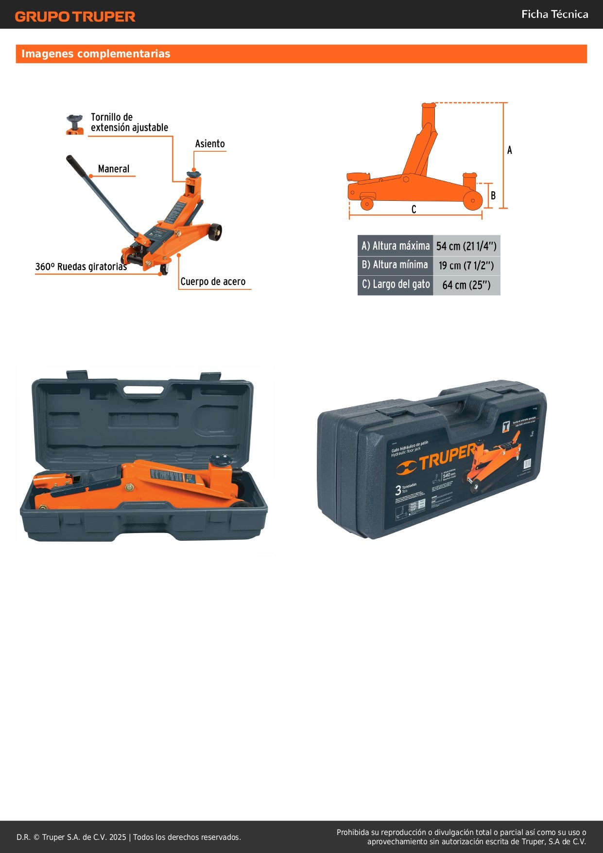 - Diseño de patín bajo: Acceso fácil debajo de vehículos con poca altura al suelo