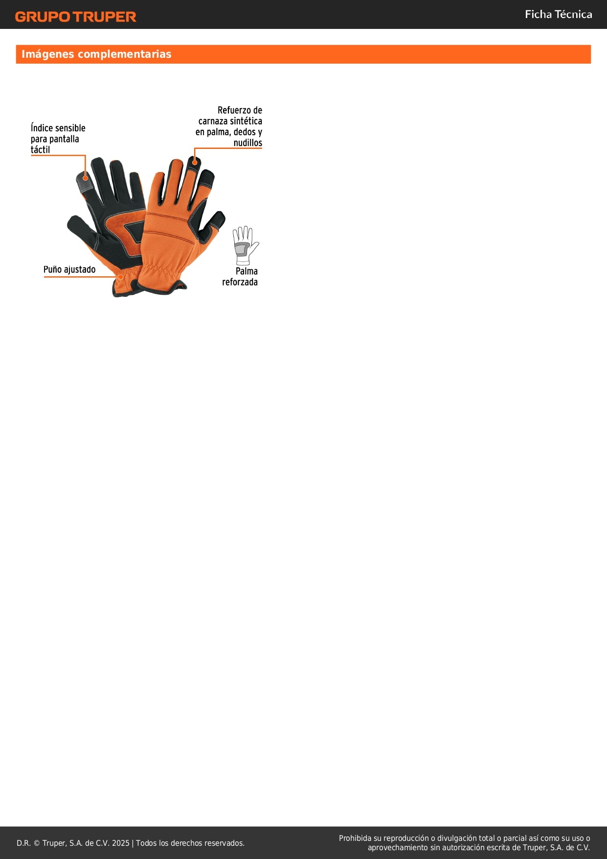 - Refuerzo de carnaza sintética en palma y dedos para mayor durabilidad y resistencia al desgaste