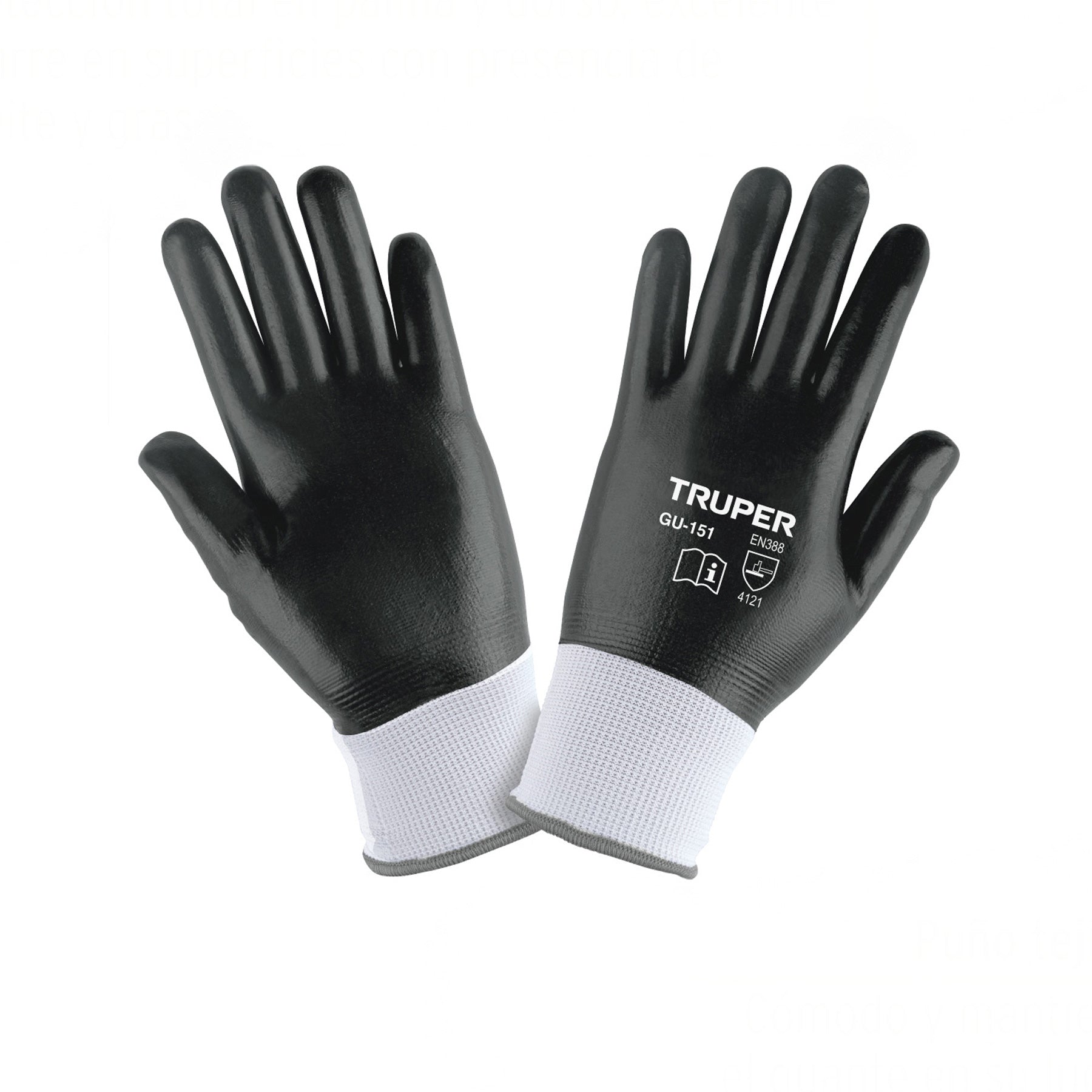 Guantes de Seguridad Industrial TRUPER GU-151 - Poliéster con Recubrimiento de Nitrilo Resistente a Aceites y Grasas - Protección Profesional para Trabajo Húmedo y Seco